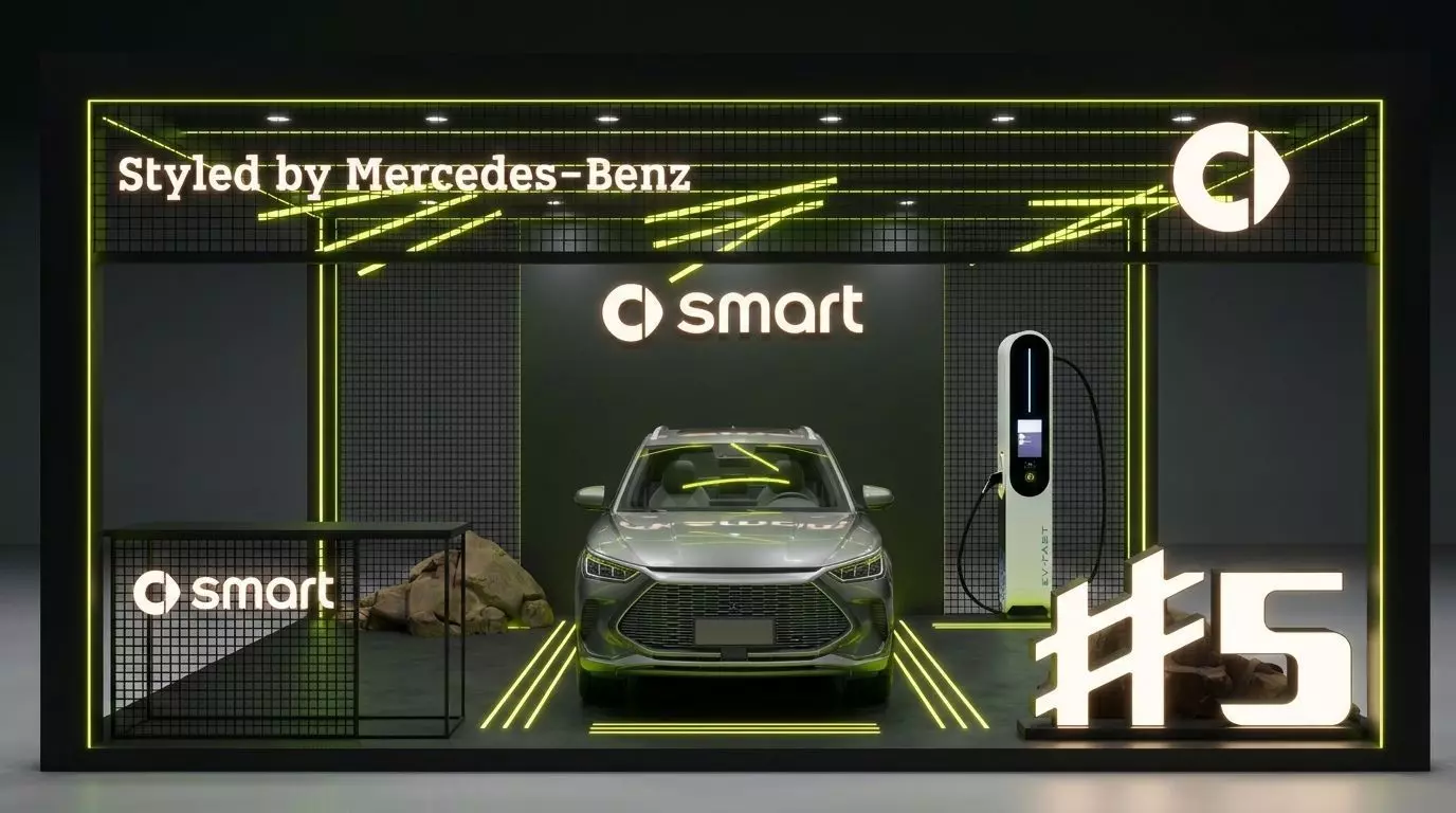 Smart #5 Car Showroom Stand with EV Charger and Neon LightsCyberpunk Style Electric Vehicle Exhibition Booth
