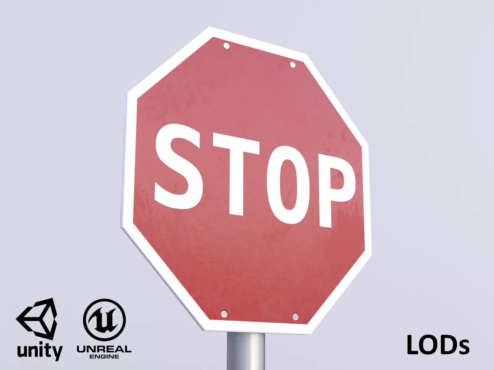 Clean stop sign 3D asset - game-ready - highpoly on lowpoly - modeled with Blender 2.80, textured carefully with Substance Painer.Rendered in real time with Eevee (also with different HDRIs). 2 parented mesh objects, single material. UV mapped for most optimal use of UV space. Metric units. H=2,30m, Diameter of the shield =0,60m