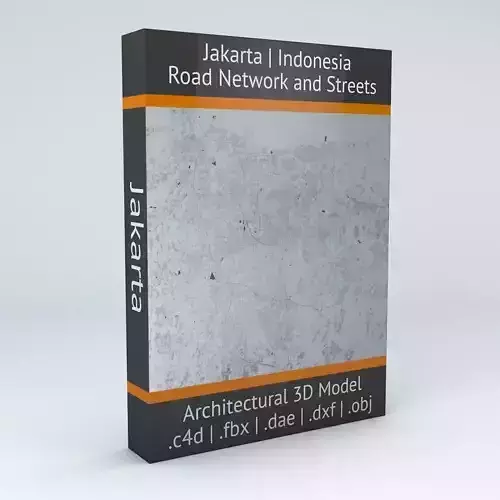 - this model is based on real data therefore this is a realistic road network and streets setup of Jakarta, Indonesia- 2 objects included | 1. roads and streets 2. squares and plazas- UV mapped with overlapping UVs- the model is positioned on a flat surface (road network is on the “floor” - no elevation data included)- geometry is polygonal quads and tris- model is untextured and renders fast- this 3D model is/can be licensed (commercial use is fine) under Creative Commons Attribution-ShareALike 2.0 (CC-BY-SA) license- buildings and streets data from OpenStreetMap / www.openstreetmap.org
