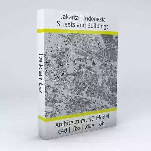 - this model is based on real data therefore this is a realistic buildings and streets setup of Jakarta, Indonesia- 9 building groups, separated to top and side parts of the buildings, are setup so that you can add variety to buildings (color materials and/or textures)- Groups can be turned off/on- UV mapped with overlapping UVs- the model is positioned on a flat surface (all buildings are on the “floor” - no elevation data included)- geometry is polygonal quads and tris- model is untextured and renders fast- this 3D model is/can be licensed (commercial use is fine) under Creative Commons Attribution-ShareALike 2.0 (CC-BY-SA) license- buildings and streets data from OpenStreetMap / www.openstreetmap.org