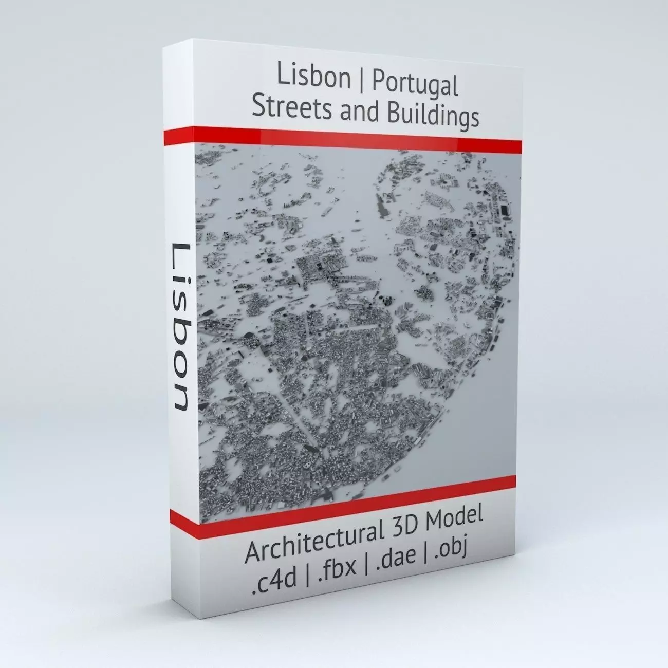 - this model is based on real data therefore this is a realistic buildings and streets setup of Lisbon, Portugal- 7 building groups, separated to top and side parts of the buildings, are setup so that you can add variety to buildings (color materials and/or textures)- Groups can be turned off/onv- UV mapped with overlapping UVs- the model is positioned on a flat surface (all buildings are on the “floor” - no elevation data included)- geometry is polygonal quads and tris- model is untextured and renders fast- this 3D model is/can be licensed (commercial use is fine) under Creative Commons Attribution-ShareALike 2.0 (CC-BY-SA) license- buildings and streets data from OpenStreetMap / www.openstreetmap.org