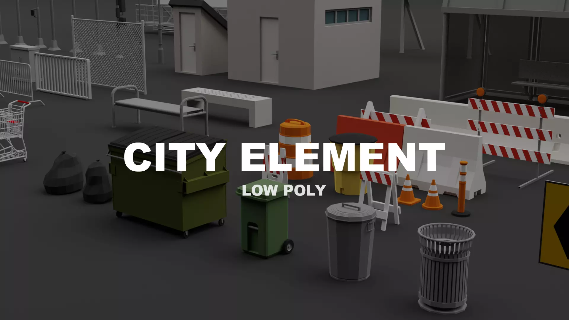 This asset includes :antena x4;banner x3;barrel x1;barrier x2;bench x2;bicycle parking x2;bus stop x1 ;chain link fence x2;Concrete barrier x1;conditioning x1;cone x2;fire escape ladder x1;hot dog cart x1;hydrant x1;Light Pole x4;mail box x1;phone booth x1;road barrier x8;roof access x2;roof elements x4;rubbish x2;shoping cart x1; sign post x8;tire x1;Traffic Light Pole x5;trash can x4;utility pole x1;ventilation x14;Water tower x1;Wooden pallets x1.