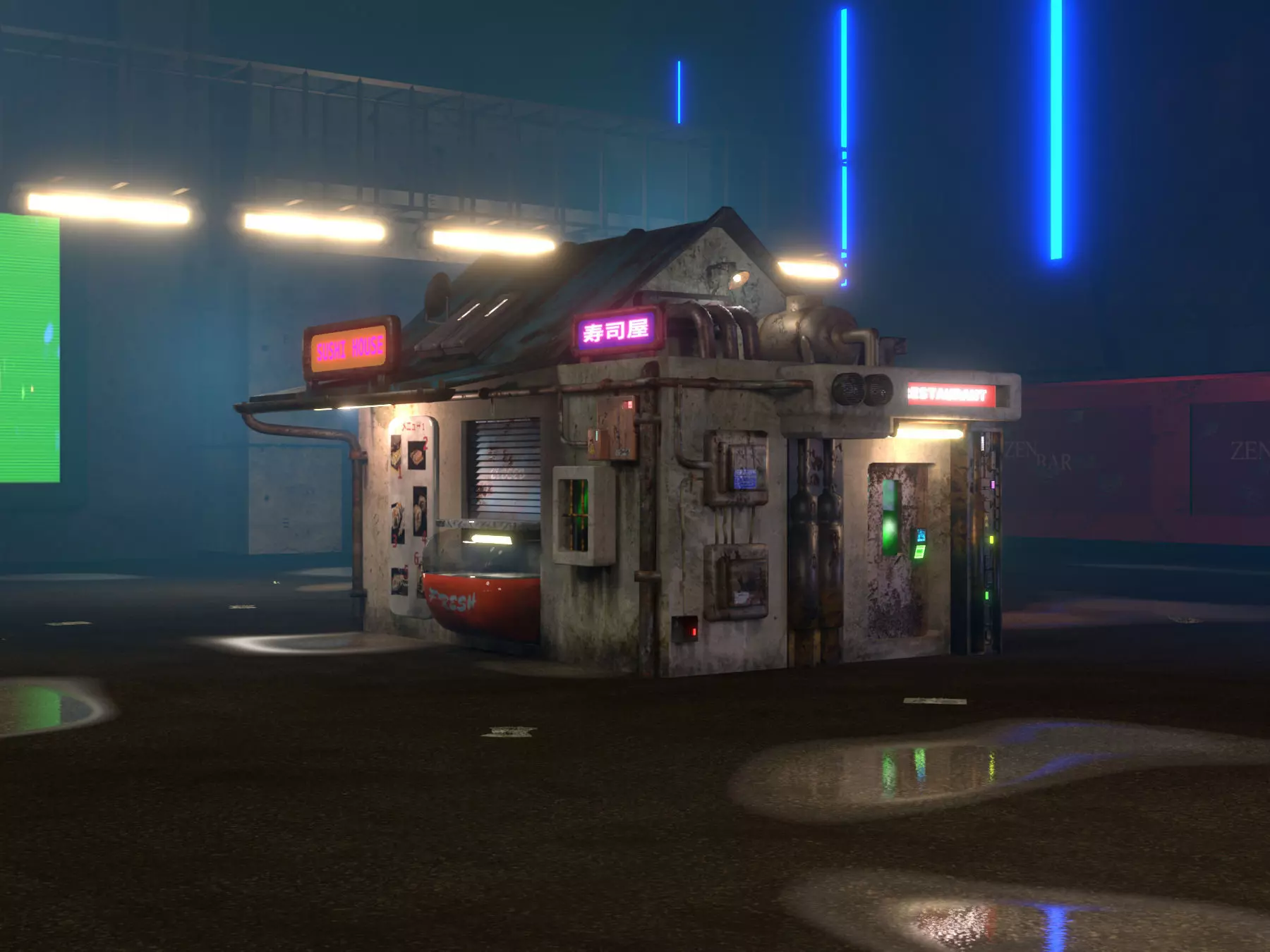 Low Poly Cyberpunk Sushi House for Games or Rendering