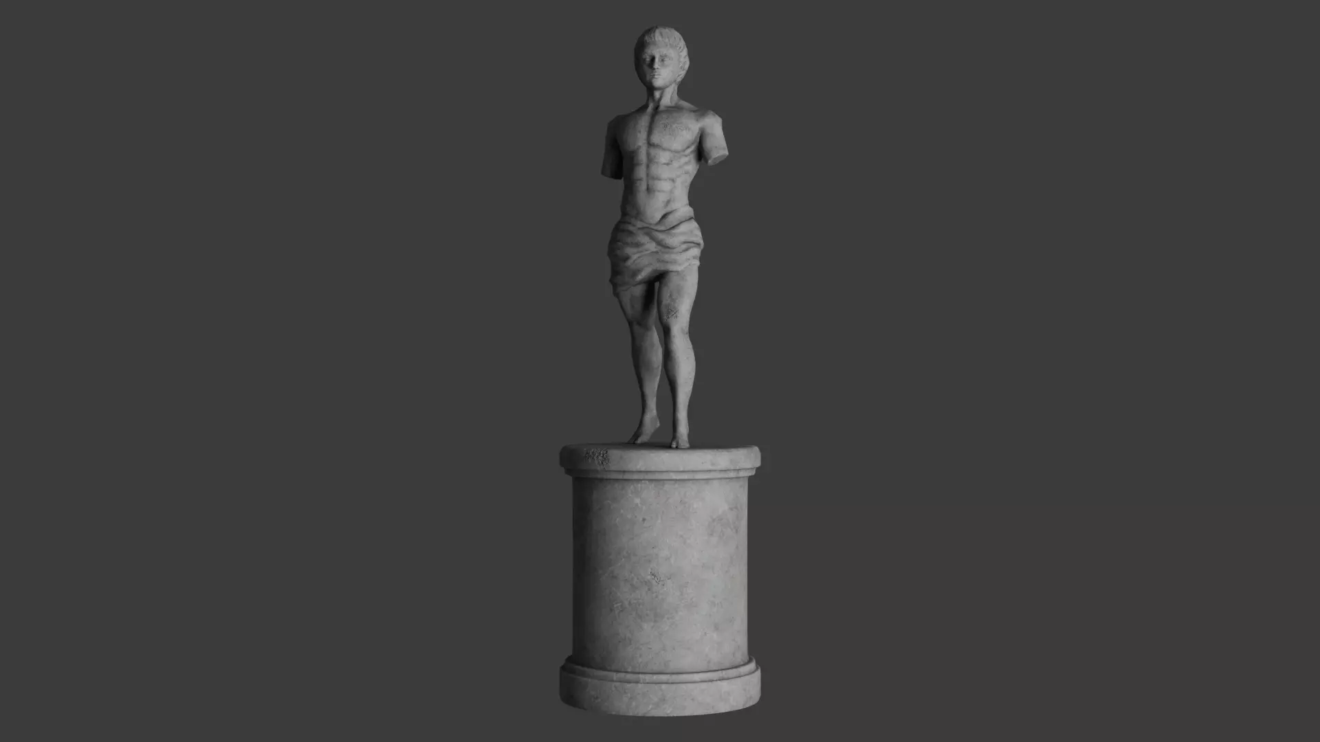 Antique old sculpture of a man.Roman monument of a guy.Ancient Greek plaster sculpture on a pedestal.Statue of Athlete and Orator of Ancient HistoryLow poly model. Files Obj, FBX, Blender.Textures PBR 4096*4096 PNG.