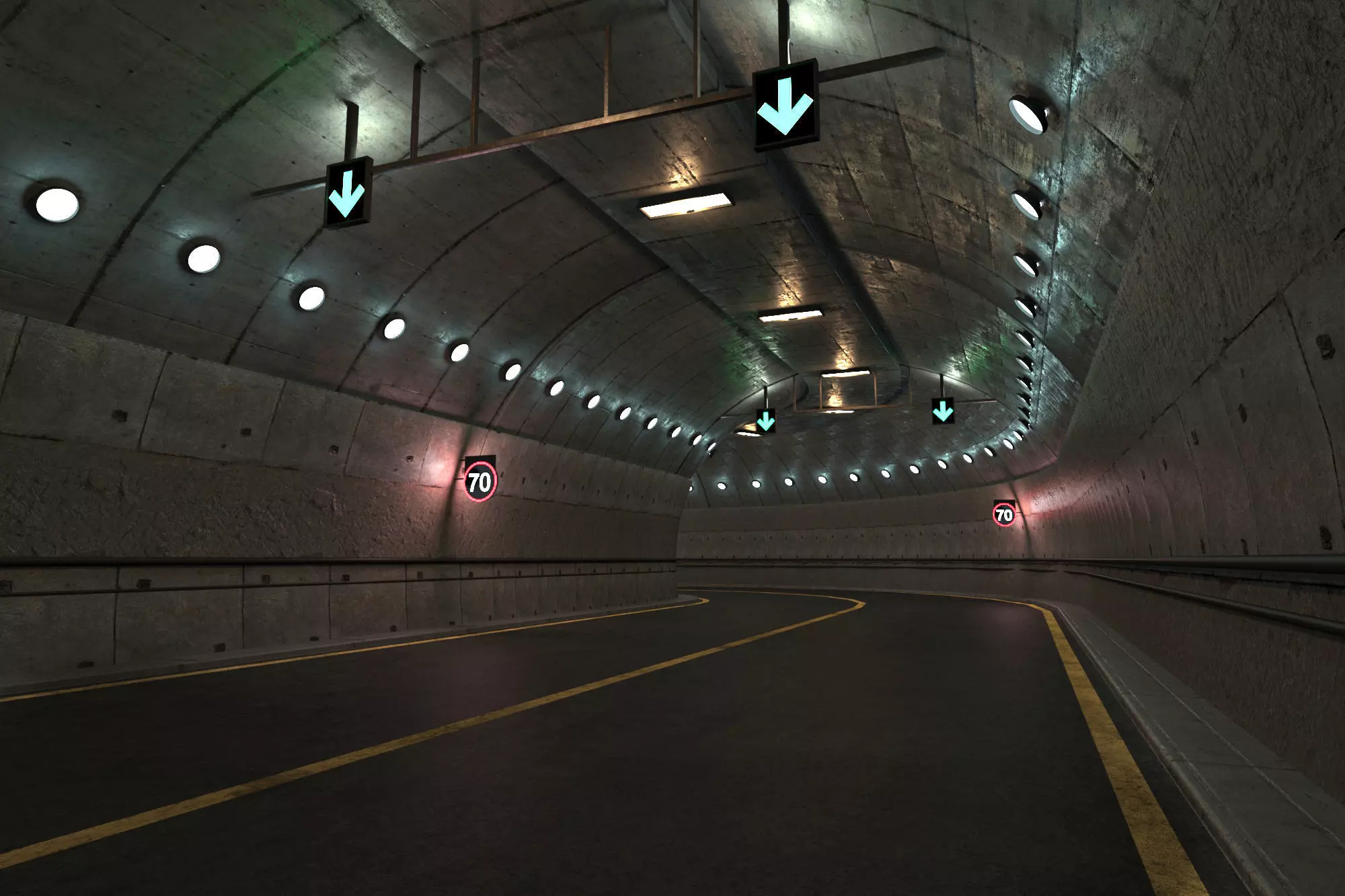 Here's a lowpoly road tunnel with 4k textures.