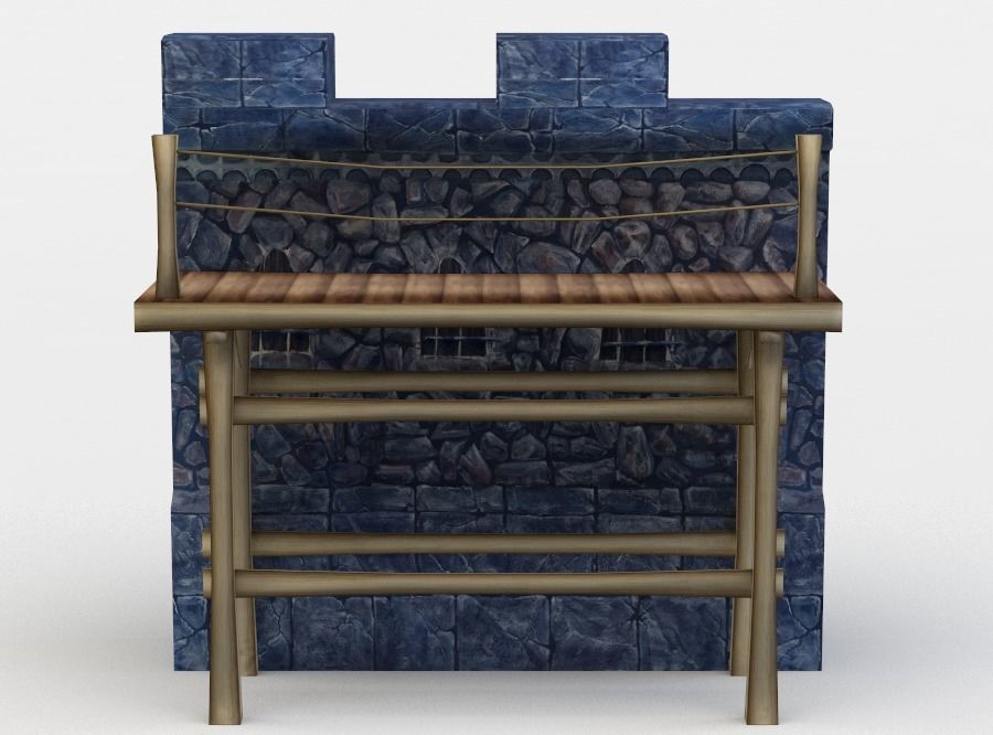 Masonry wall with wooden platform Low-poly 3D model