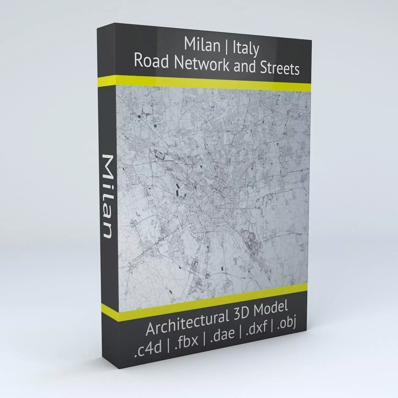 - this model is based on real data therefore this is a realistic road network and streets setup of Milan, Italy- 2 objects included | 1. roads and streets 2. squares and plazas- UV mapped with overlapping UVs- the model is positioned on a flat surface (road network is on the “floor” - no elevation data included)- geometry is polygonal quads and tris- model is untextured and renders fast- this 3D model is/can be licensed (commercial use is fine) under Creative Commons Attribution-ShareALike 2.0 (CC-BY-SA) license- buildings and streets data from OpenStreetMap / www.openstreetmap.org