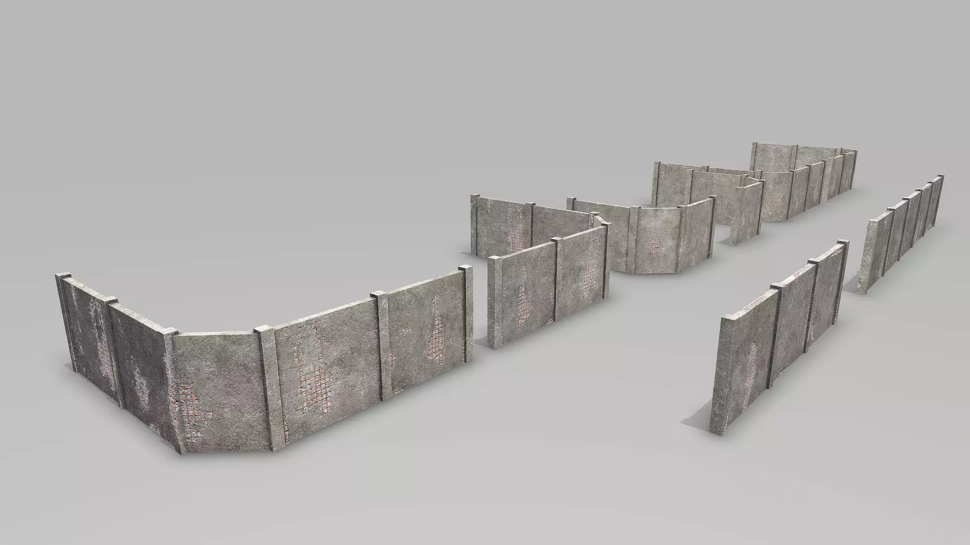 Modular Damaged Concrete Walls Low-poly 3D model
