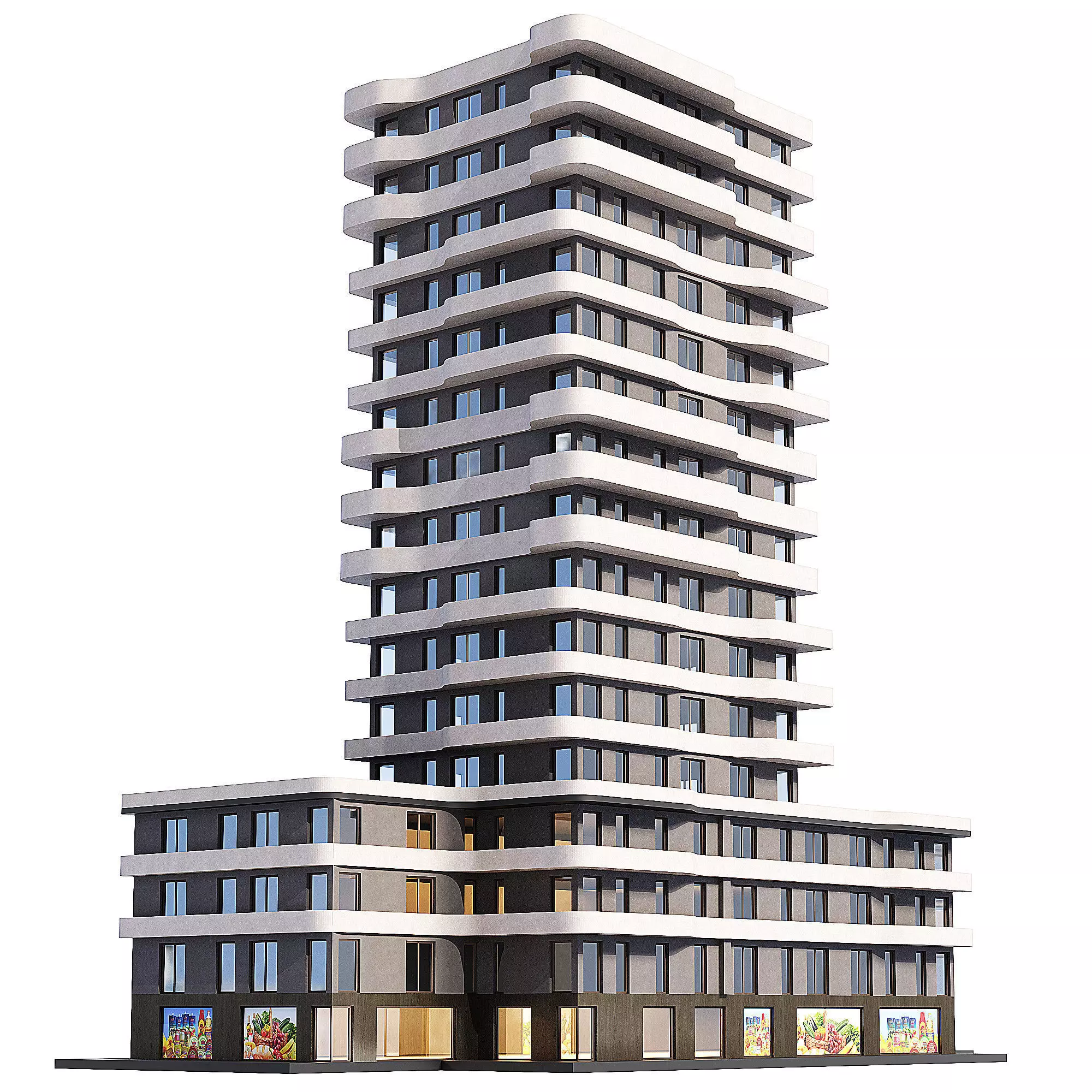 The model has material settings that define how surfaces look (color, shine, transparency, etc.).