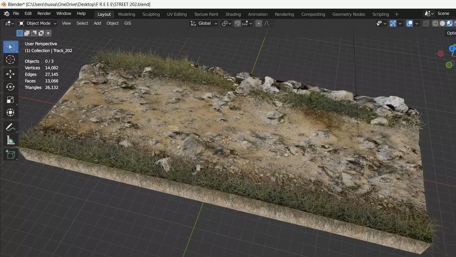 The total number of polygons (flat shapes) that make up the 3D model.