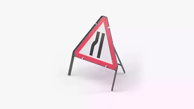 Road Narrows Left Triangular Road Sign Low-poly 3D model