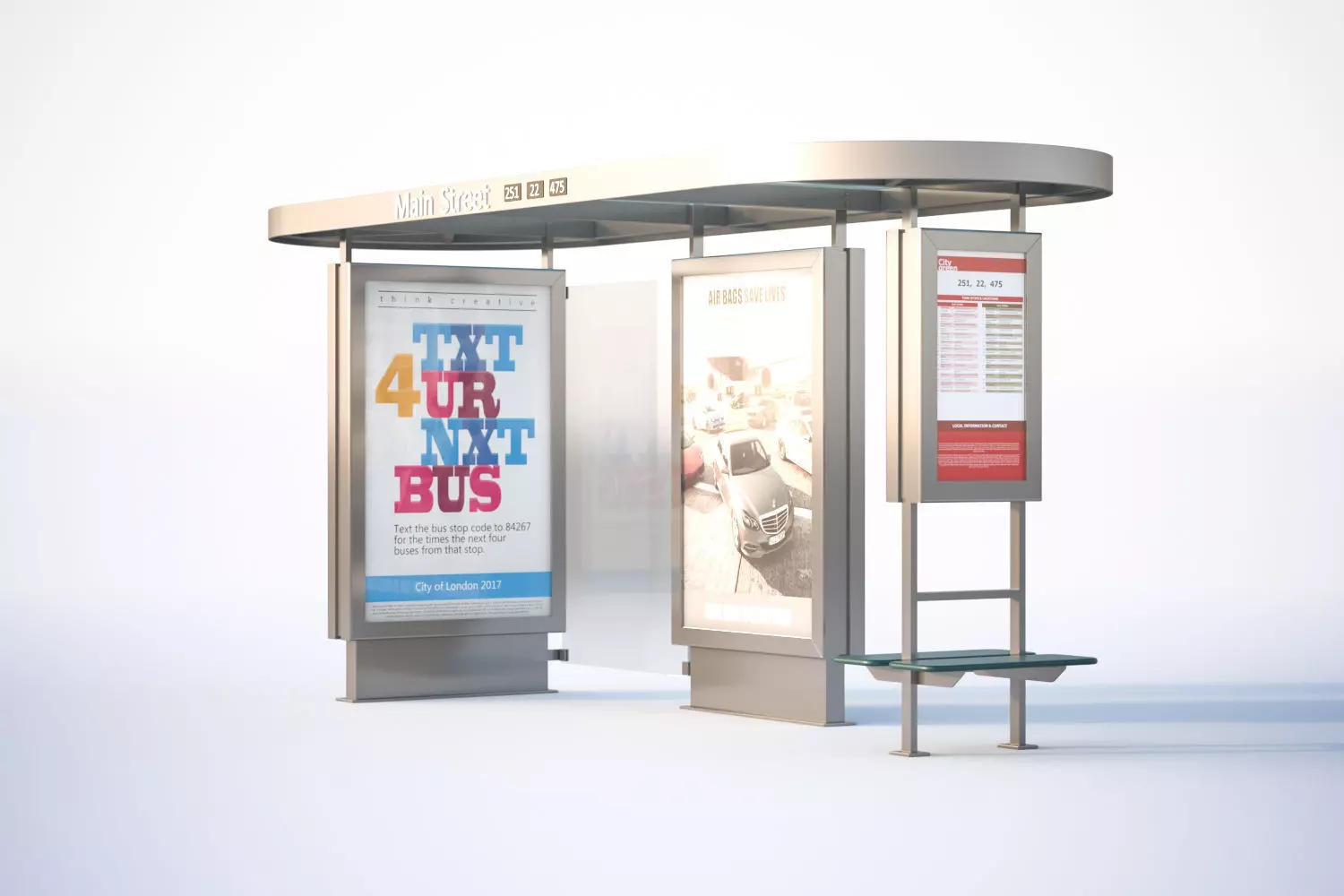 This high quality 3D model includes covered bus stop with information boards and passenger seat.Model prepared for 3d architectural visualisations and other graphic works.