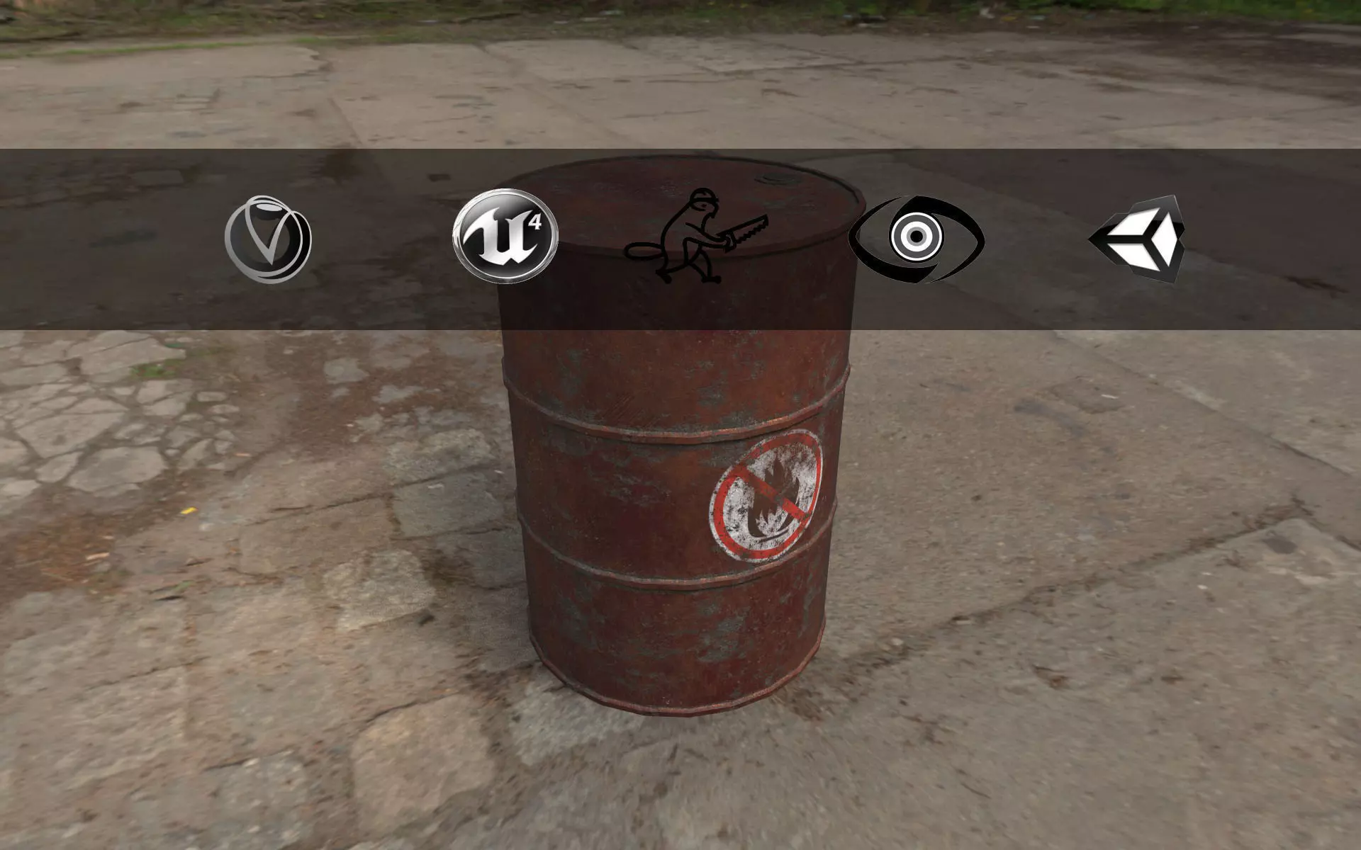 The model's surfaces are mapped to a 2D image, allowing textures to display correctly.