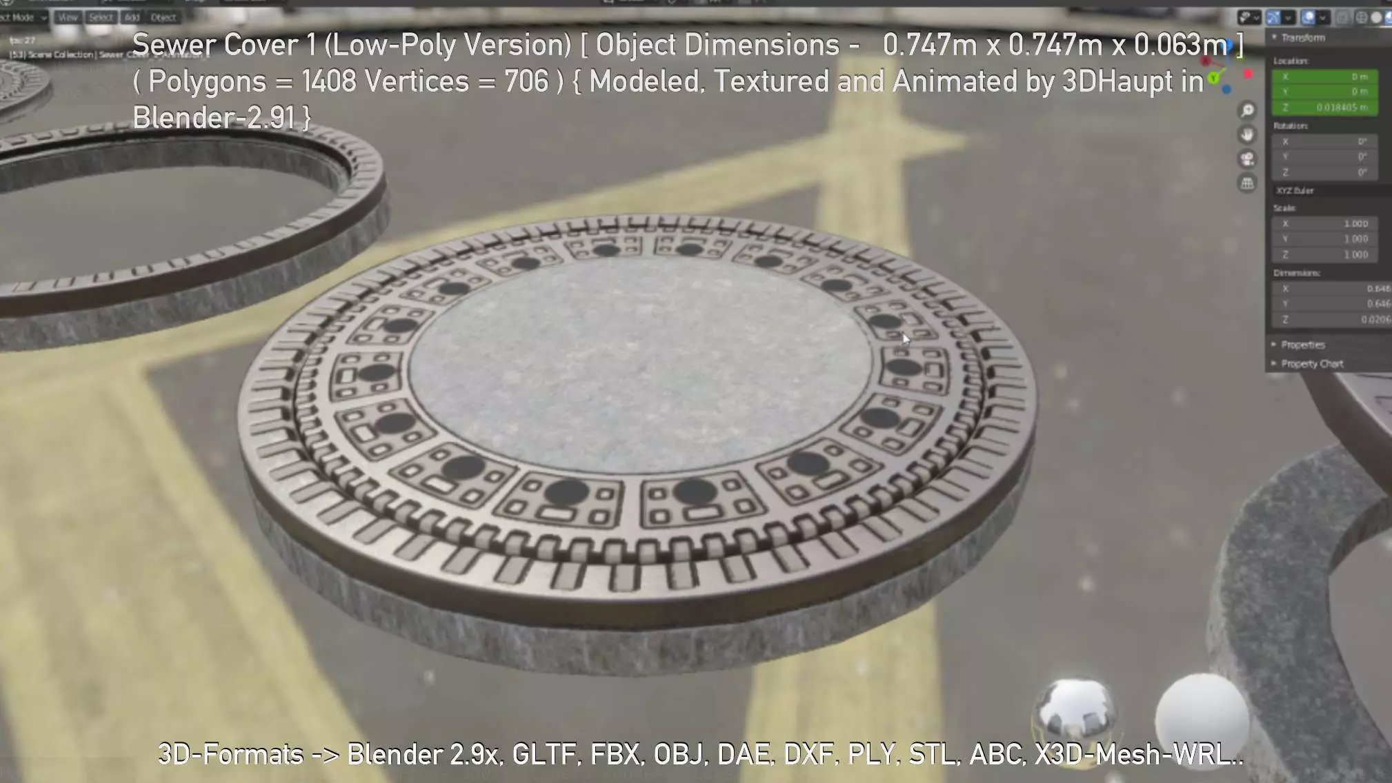 Here is the pbr textured low-poly version of sewer cover 1.