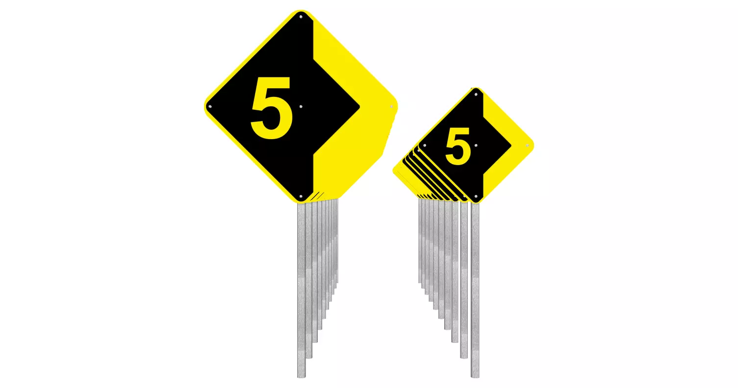 Sign indicating a sharp curve ahead, numbered 5, 4, 3, 2, 1, to place the sides of a highway with many curves in descending order. When the driver passes these 5 signs in sequence, he will know that there is a curve ahead, either to the right or left.