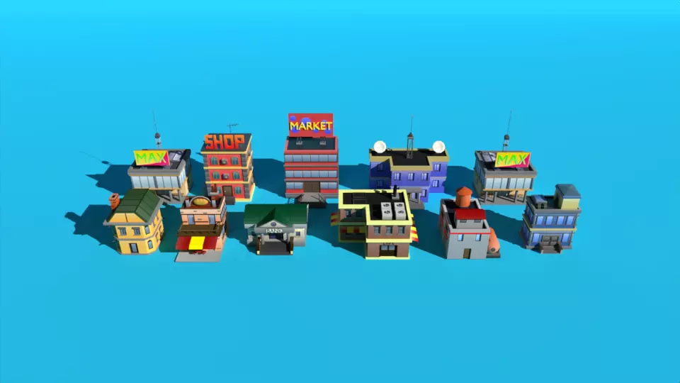 Sity street build cartoon low-poly stylized simple mobile Low-poly 3D model