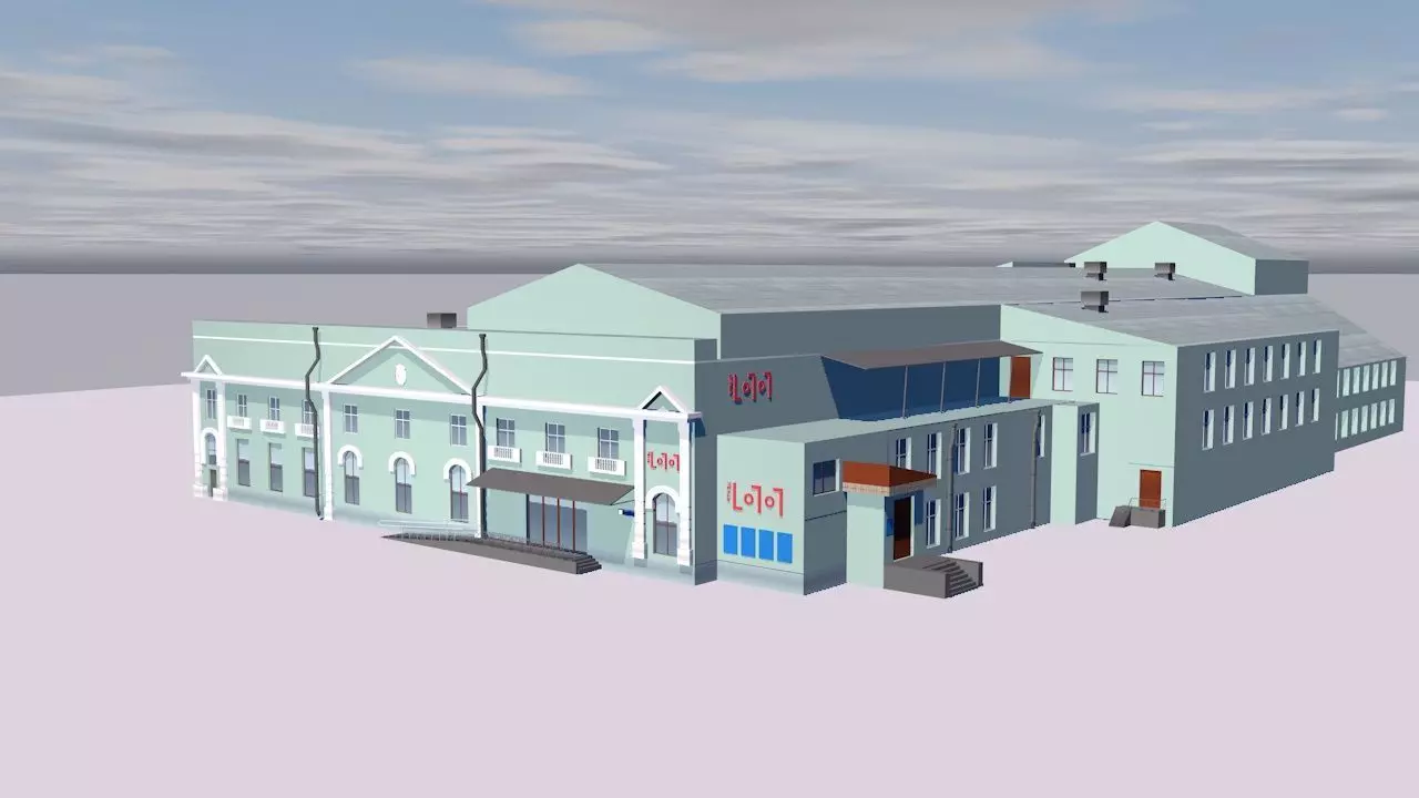 Supermarket building on cloudy day Low-poly 3D model