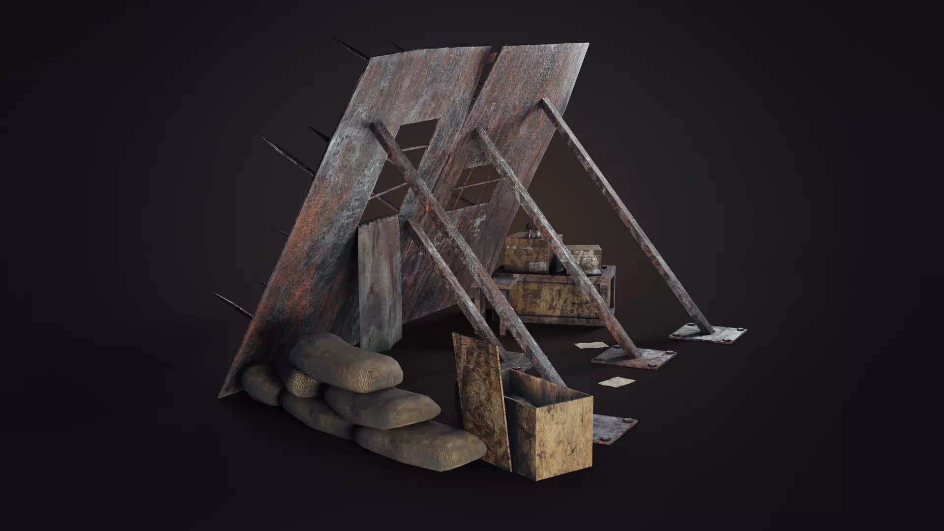 Model with pbr realistic textures (they are in a separate archive, you can use them in any 3D package for any render). Perfect for surviving games or for your atmospheric scene.The project has a scene for Blender with customized light, materials and post-processing for your convenient use. You can copy the texture model into another open Blender window with your scene using the combination ctrl + c / ctrl + v.Also in the archive is a folder with Unreal Engine and Unity textures with a short shader setup guide.