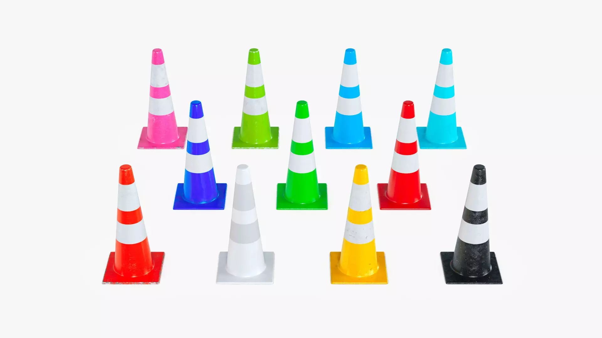 • There are 11 different existing traffic cone colors options in the scene.