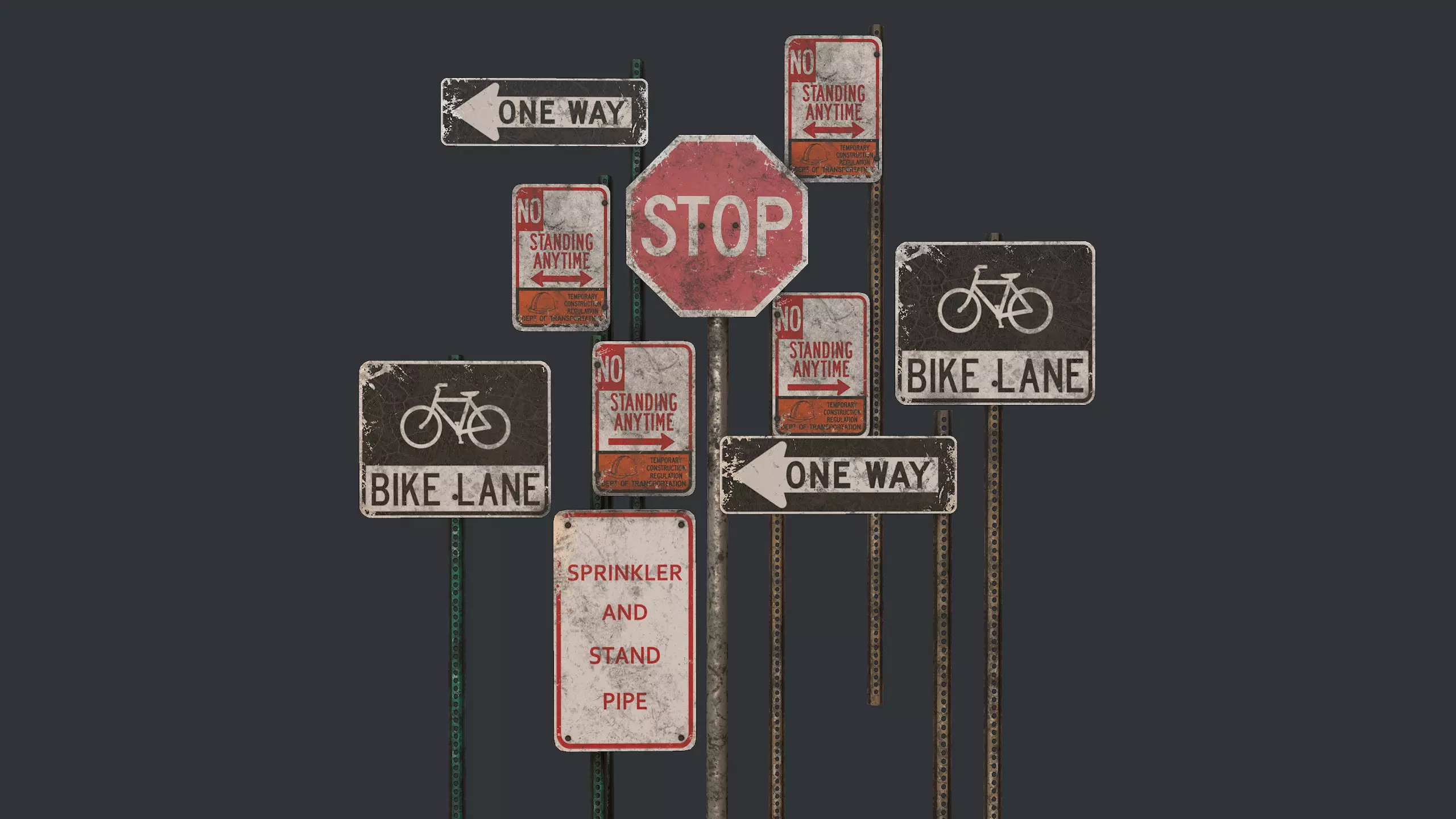 • 4k texture (jpg), only one texture (basecolor, normal, metallic, roughness, ambient occlusion, opacity) for all signs