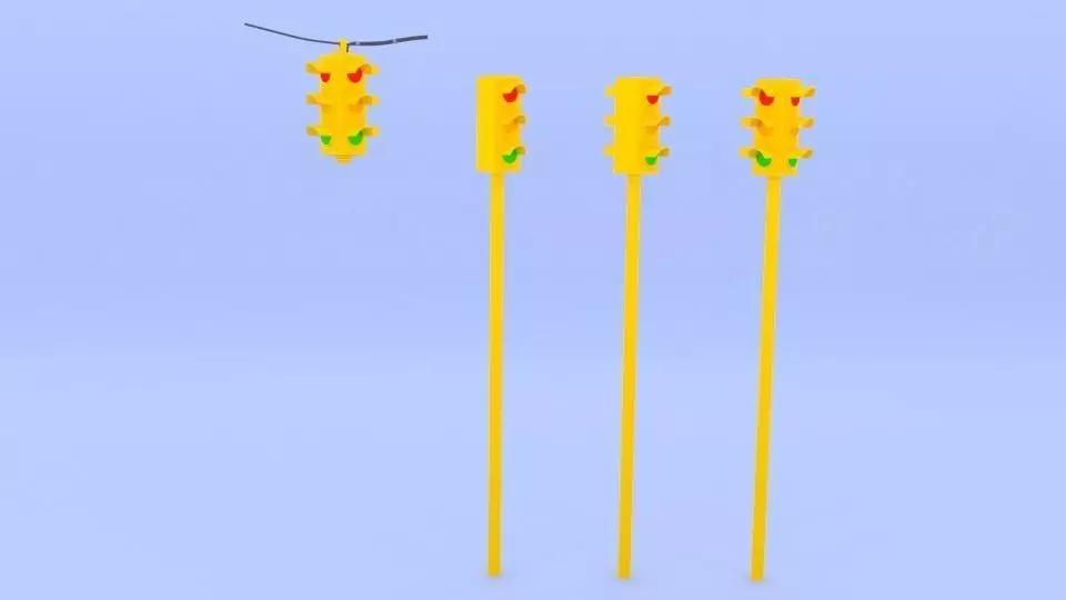 A set of antique traffic lights in single, two way, four way, and hanging four way style.