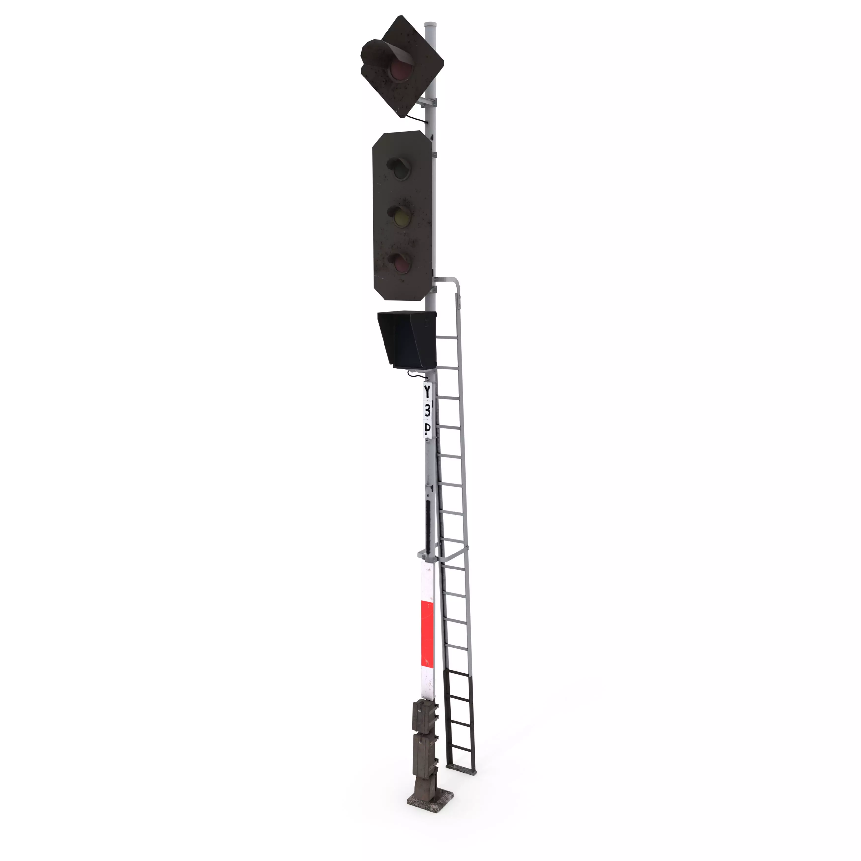 Railway traffic light 3d model built in Blender and rendered with Cycles, with PBR materials, Game-Ready.