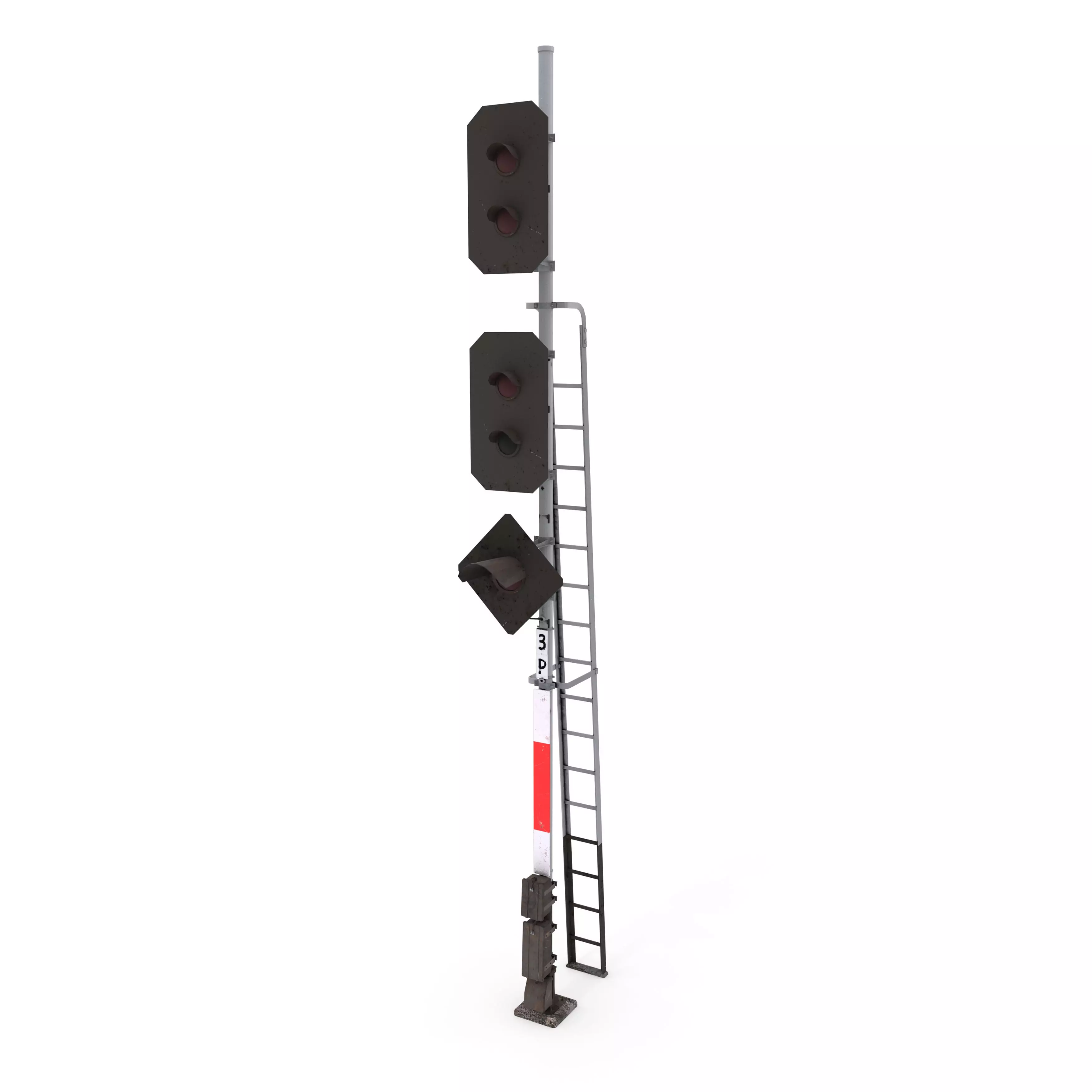 Railway traffic light 3d model built in Blender and rendered with Cycles, with PBR materials, Game-Ready.