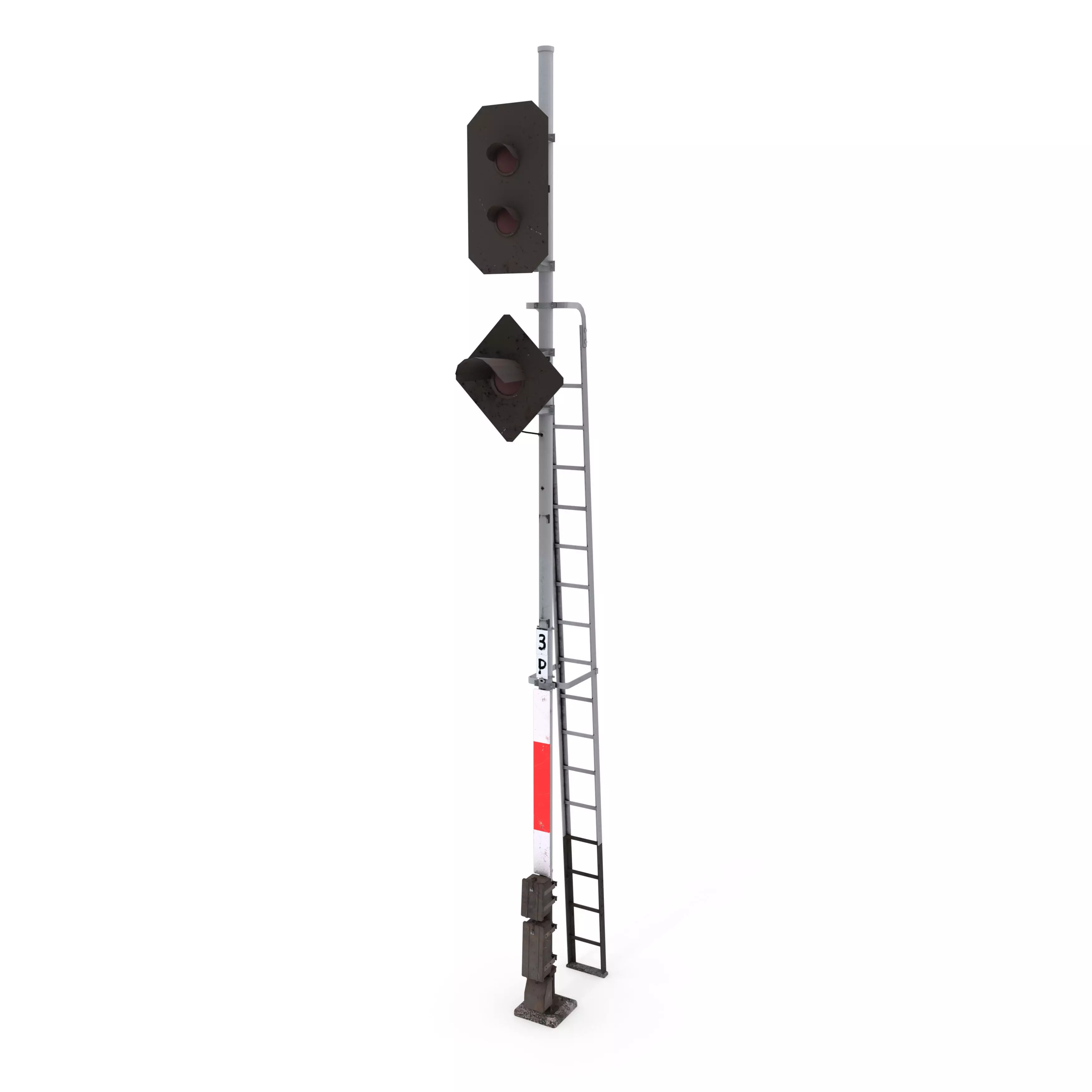 Railway traffic light 3d model built in Blender and rendered with Cycles, with PBR materials, Game-Ready.