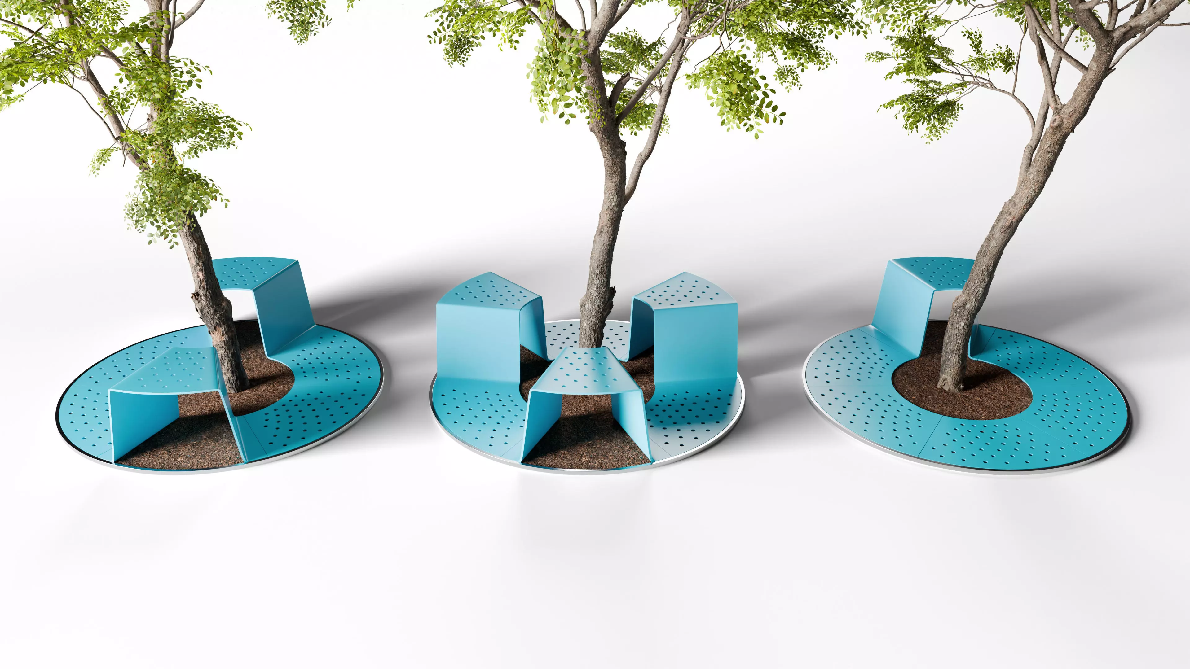 Modern urban bench designed for installation around trees in public spaces such as parks, plazas, courtyards, and pedestrian areas.The clean geometric design makes it suitable for contemporary urban and landscape visualization.