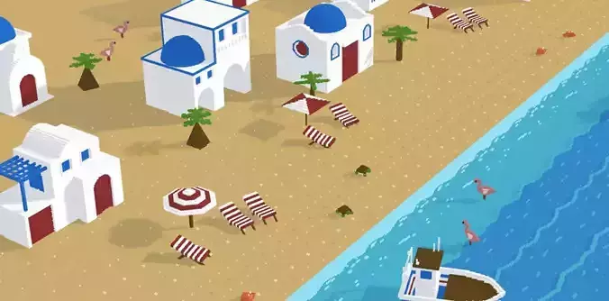 Voxel Santorini Low-poly 3D model