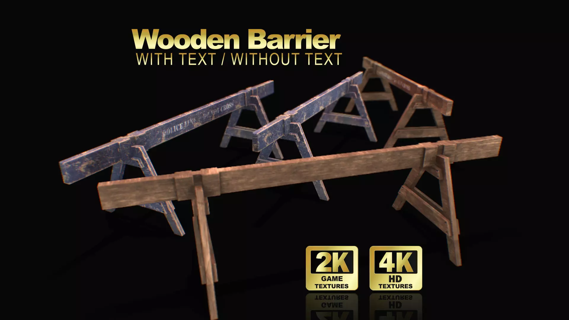 Textures: 2K & 4K Uses PBR Textures, JPG format in separate folders. Textures Separated into 4 Folders 2K and 4K, with text and without text.