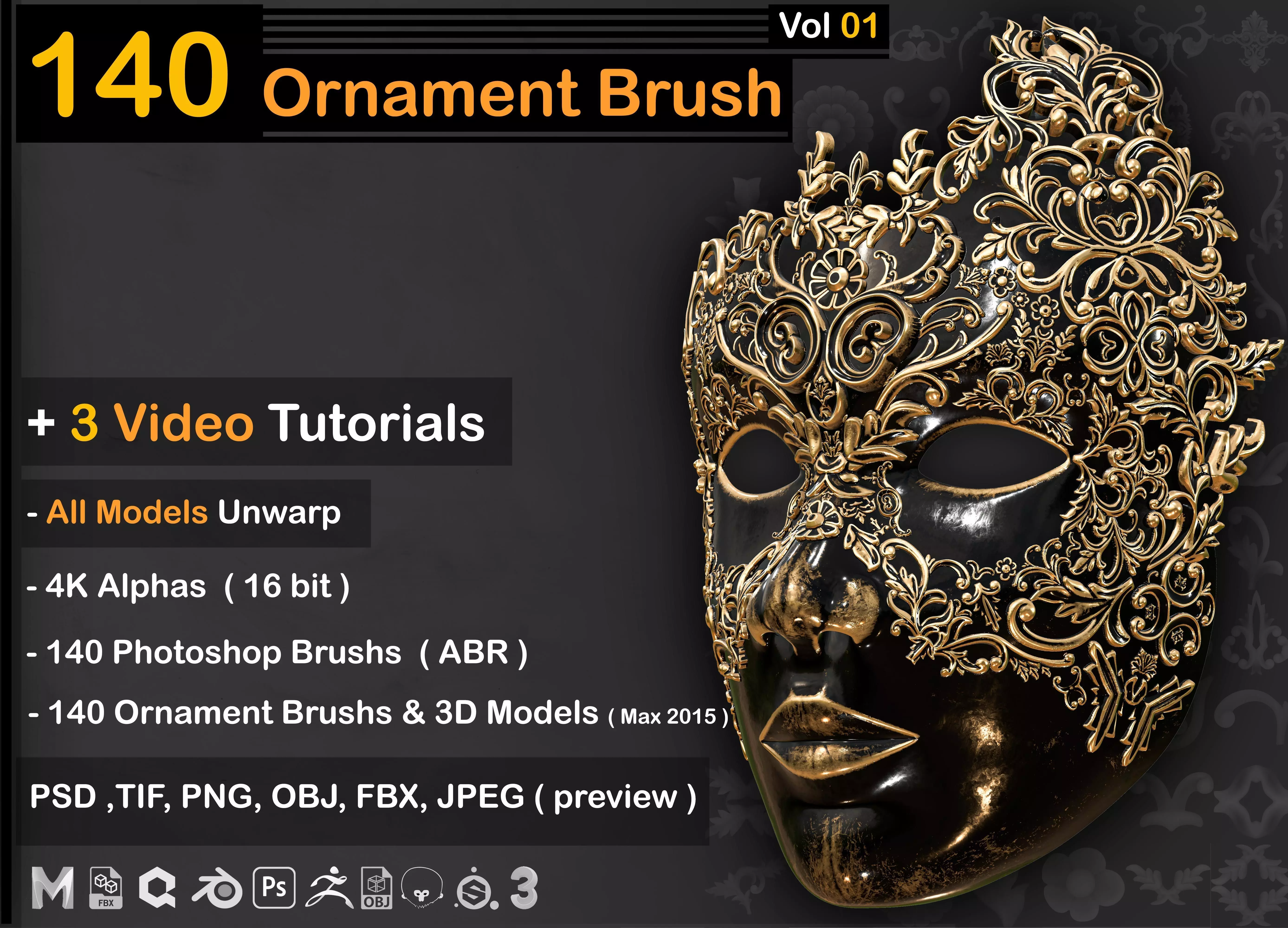 140 Ornament Brush +3DModel + IMM Brush - VOL 01