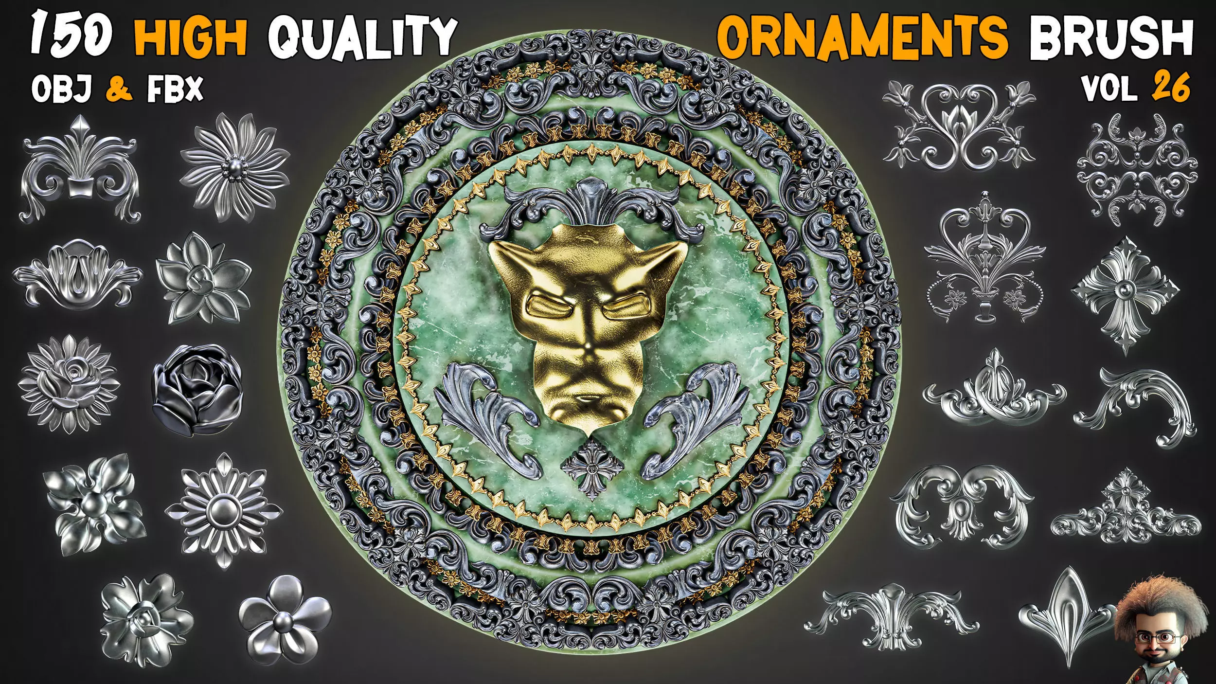 2000 SUPER ORNAMENTAL MEGAPCK - KING OF ORNAMENTS BRUSH - | 30 % OFF THIS WEEK |800 ORNAMENTAL SUPER MEGAPCK | 30 % OFF THIS WEEK |400 SUPER ORNAMENTAL MEGAPCK | 30 % OFF THIS WEEK |93 Ornament Kitbash + imm brush + 5 Video Tutorials - Vol 220 Crown Low Poly + 40 Crowns Ornament Brush - VOL 380 Flower Ornaments & 30 Rosettes 3D Model – 60 Minutes Free Tutorials - Vol 850 Professional Ornaments Brushes – Vol 13--- Trim Brushes :