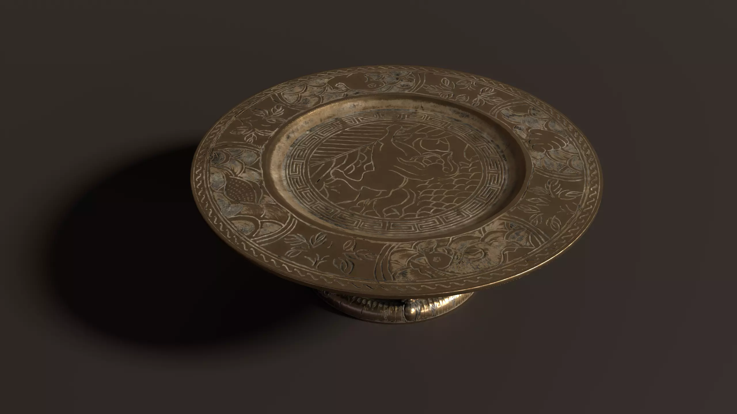 A finely carved 3D antique Chinese tray. Lightly distressed, dated mid- to late-20th century. Made of brass/bronze, hammered and chiseled, engraved with traditional authentic oriental patterns and motives. Traditionally used as a serving tray, both indoors and outdoors. A must-have piece for collectors of Asian antiques and artifacts.