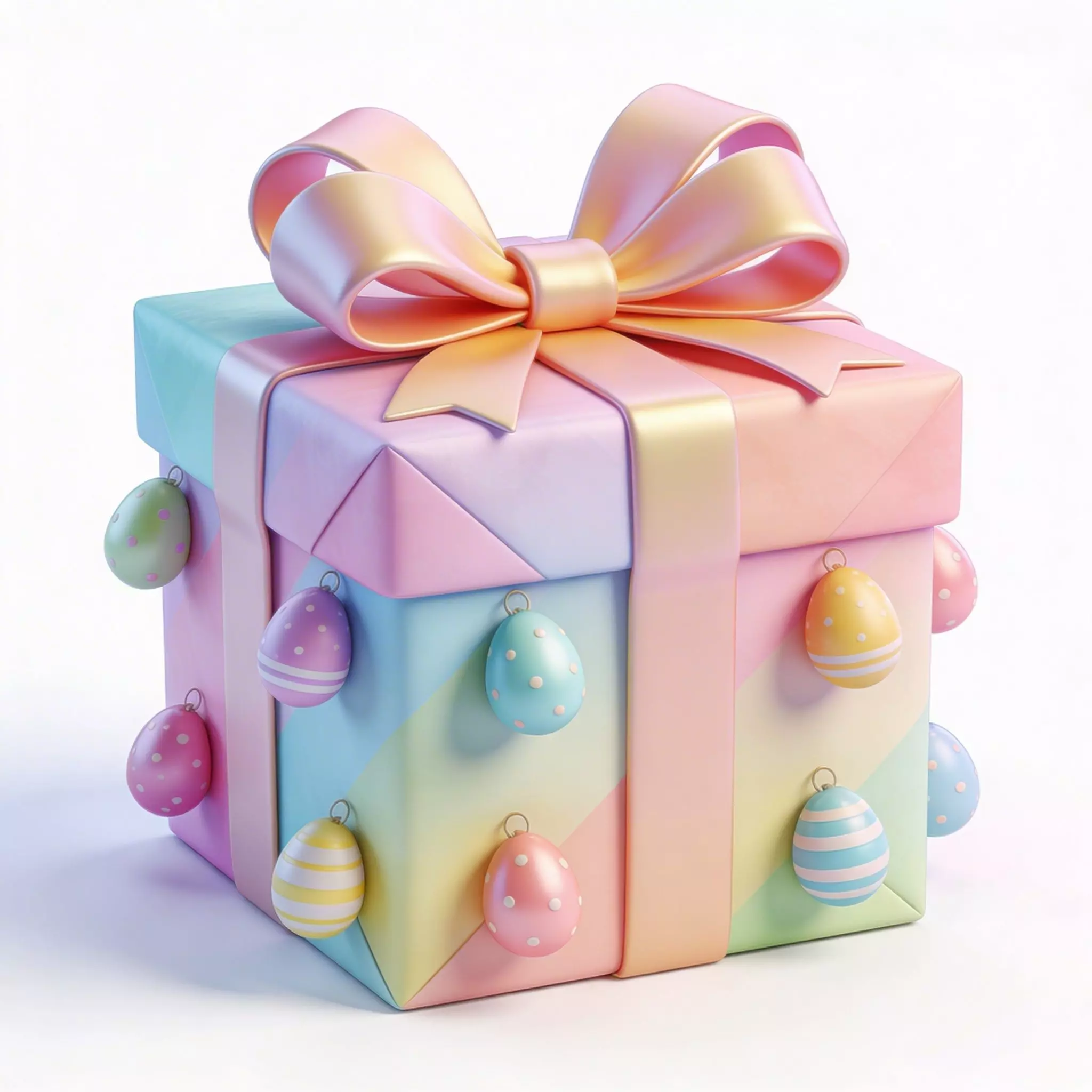 TAGSGift Box, 3D Model, Easter, Present, Festive, Holiday, Pastel, Pink, Mint Green, Ribbon, Bow, Decorative Egg, Surprise, Celebration, Spring, Rendering, Digital Art, Game Asset, Realistic Texture, Seasonal, Gift Wrap, Cute, Whimsical, High Fidelity, Ornament, Packaging Design.