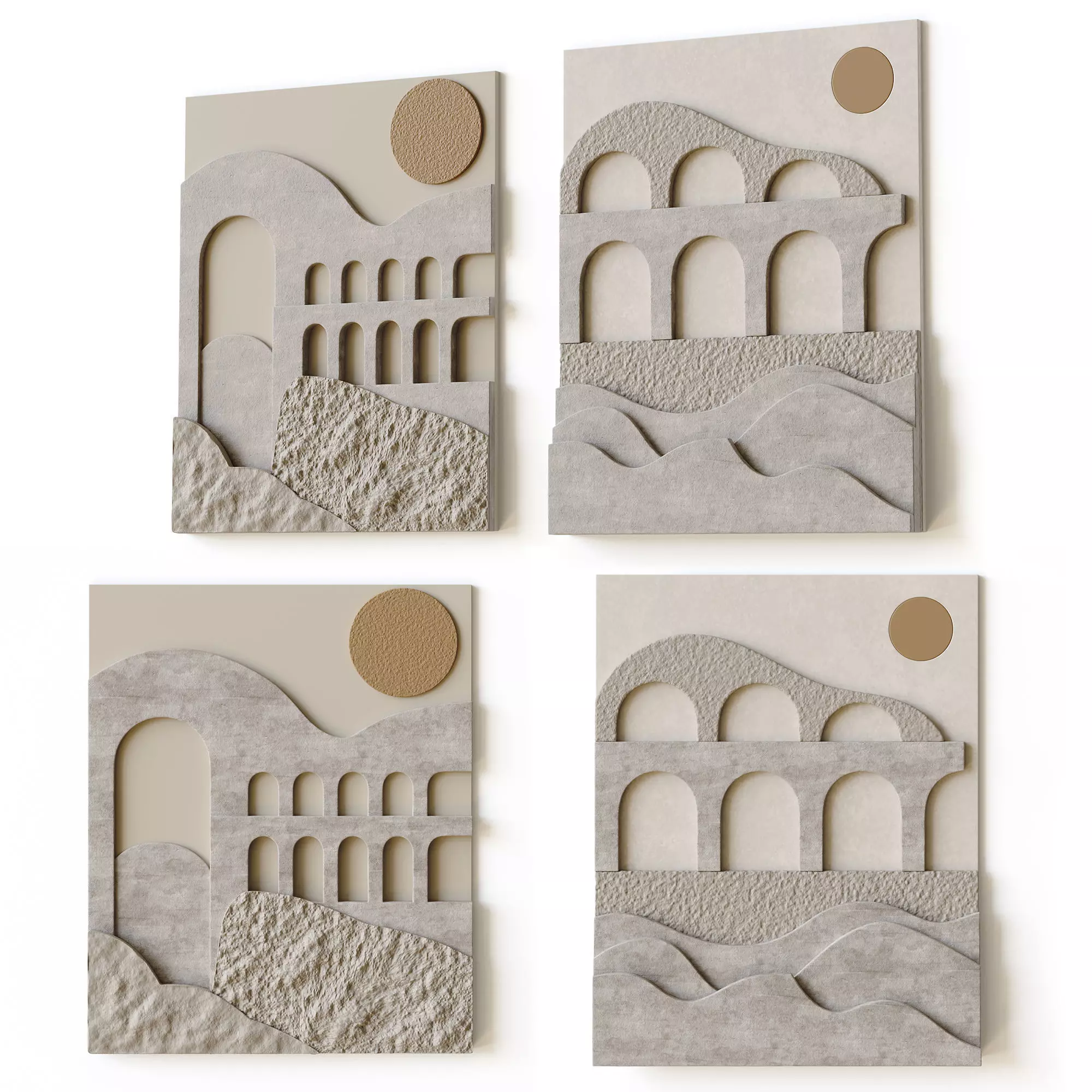 Description:High quality 3D Wall Mural model with abstract architectural relief design. The model features layered geometric shapes, arches, and textured surfaces inspired by modern architectural wall art. Suitable for interior visualization, wall decoration, architectural renders, and modern interior design projects. Clean geometry, real-world scale, and professional topology make the model ready for production use. Fully compatible with Corona Renderer and V-Ray, ideal for use in living rooms, offices, hotels, galleries, and premium decorative wall concepts.