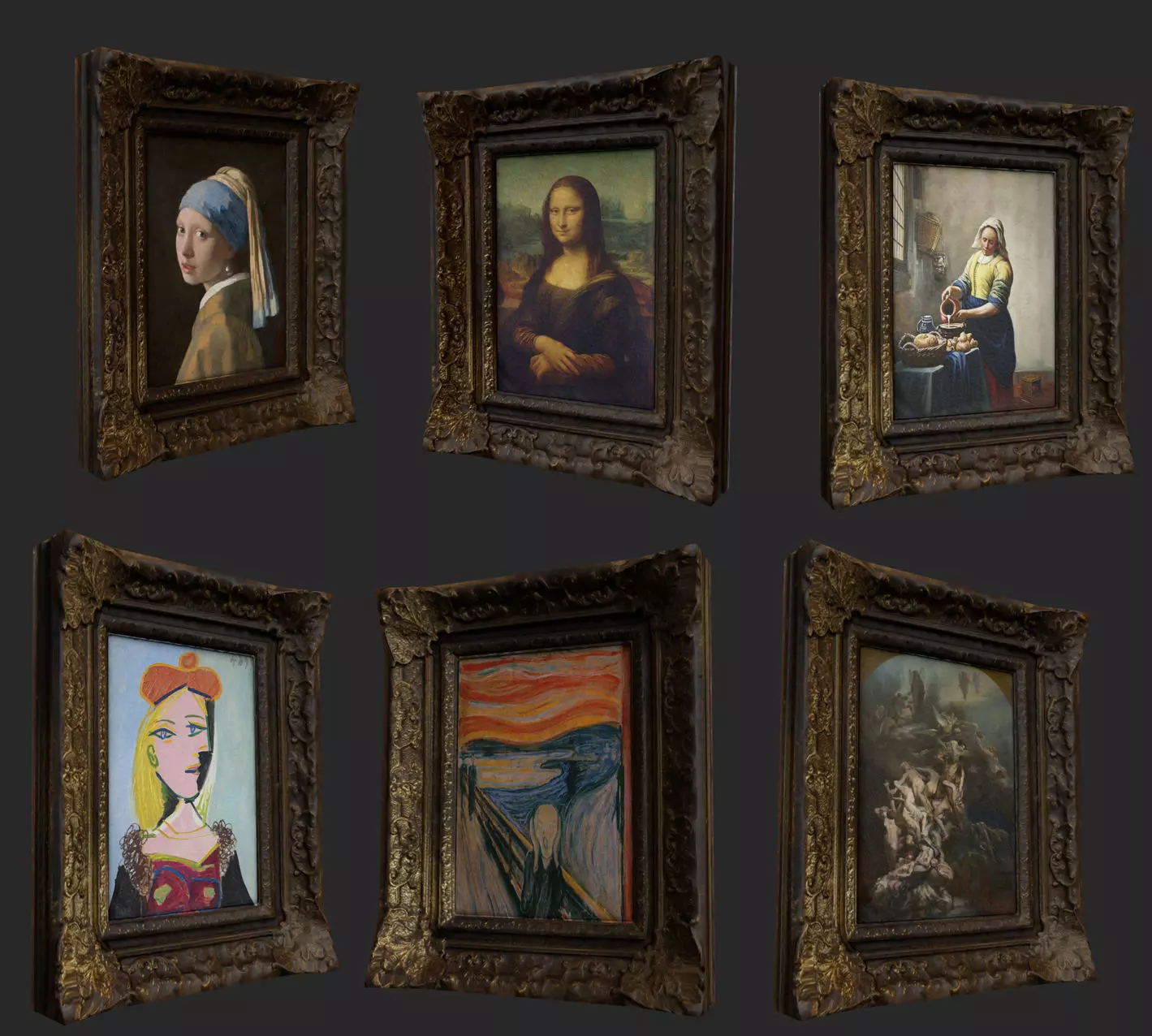 Girl with a Pearl EarringThe MilkmaidFour of Picasso WomenSkrikHeaven And HellMona Lisa