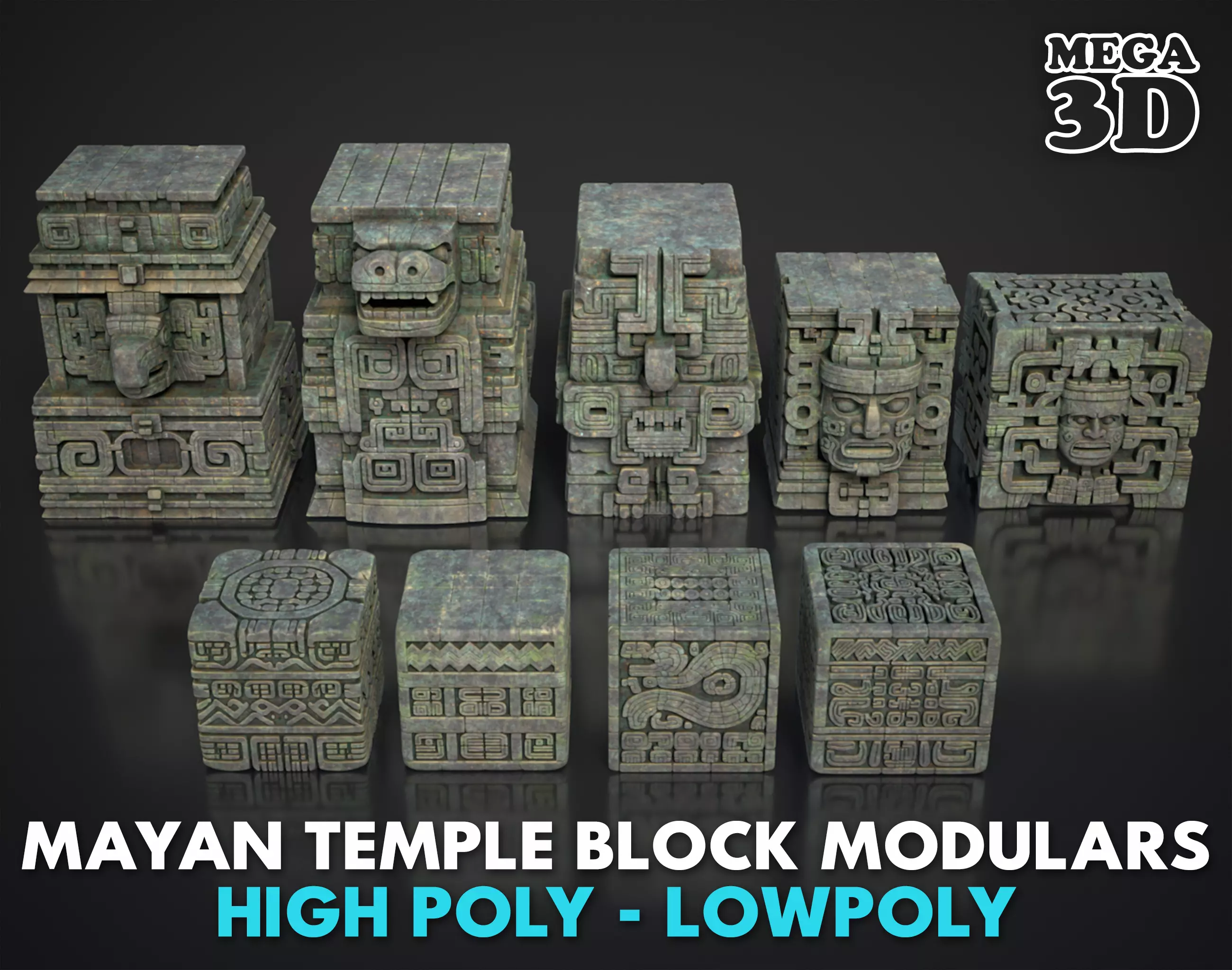 This premium 3D asset pack includes 9 unique Mayan block styles. Every model is provided in both low poly and high poly versions, resulting in a total of 18 3D models (9 styles × 2 versions).