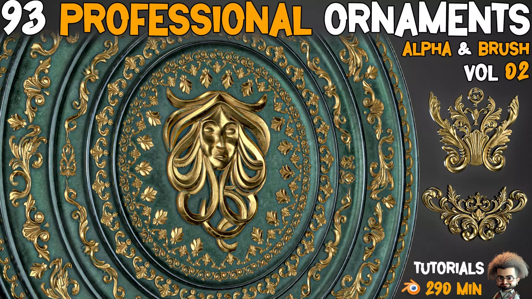 63 Professional Ornaments.63 IMM Brushes.30 Flower Ornaments.30 IMM Brushes.4K (4096*4096).16 BitZbrush Brush, PSD , PNG, OBJ, MAX, JPEG (preview)3D Models OBJ-FBX-Max File.Video Tutorial :