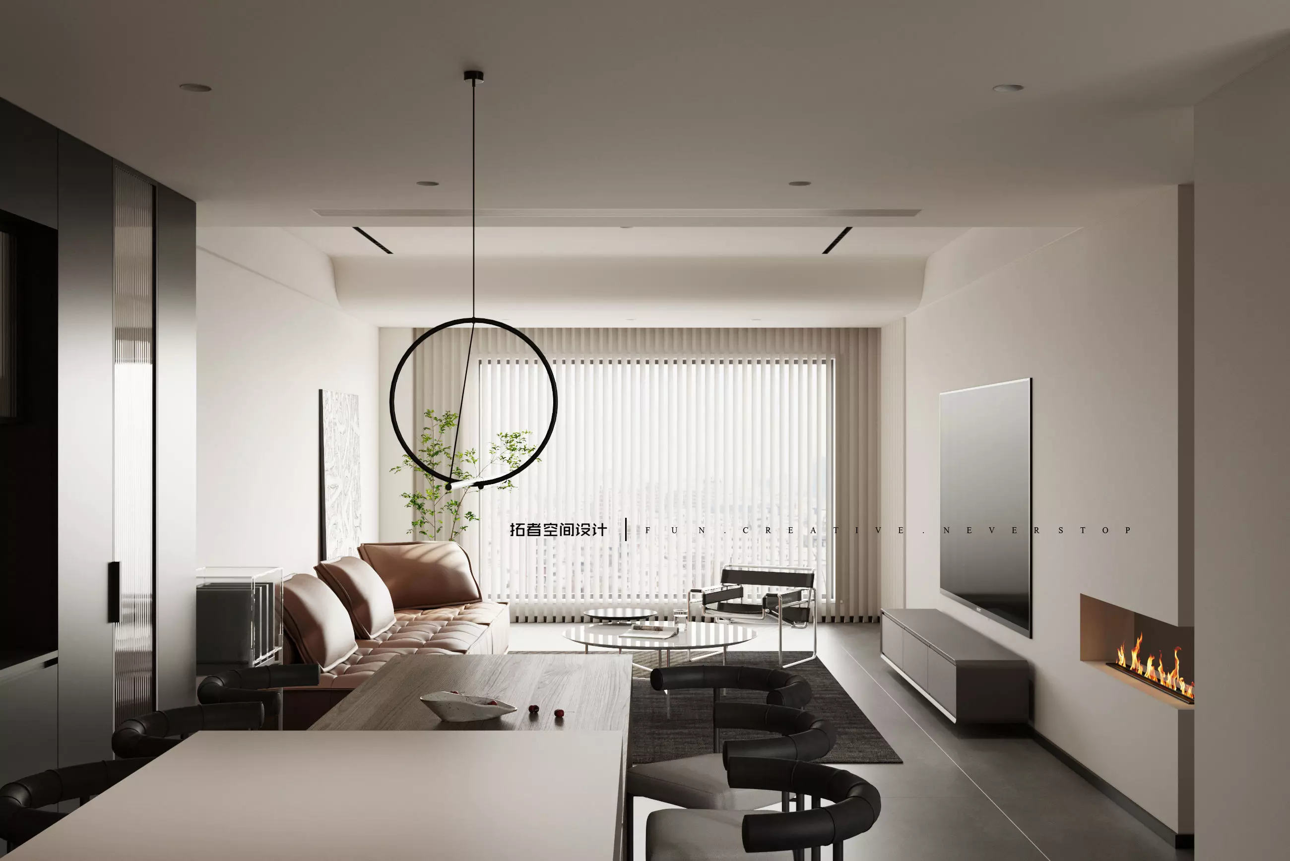The living space is adorned with sleek furniture, accentuated by minimalist aesthetics that breathe life into every corner. A harmonious blend of textures and tones creates an ambiance of luxury and warmth. The dining area exudes sophistication, with meticulously designed chairs and tables offering both style and functionality.