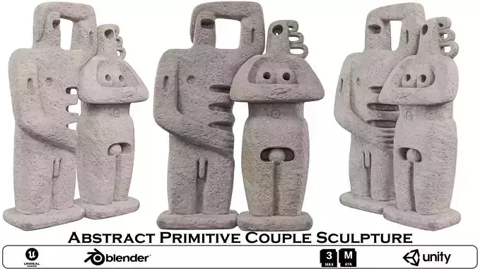 Enhance your digital art collection with the artistic depth and symbolic beauty of this Abstract Primitive Couple Sculpture 3D model!