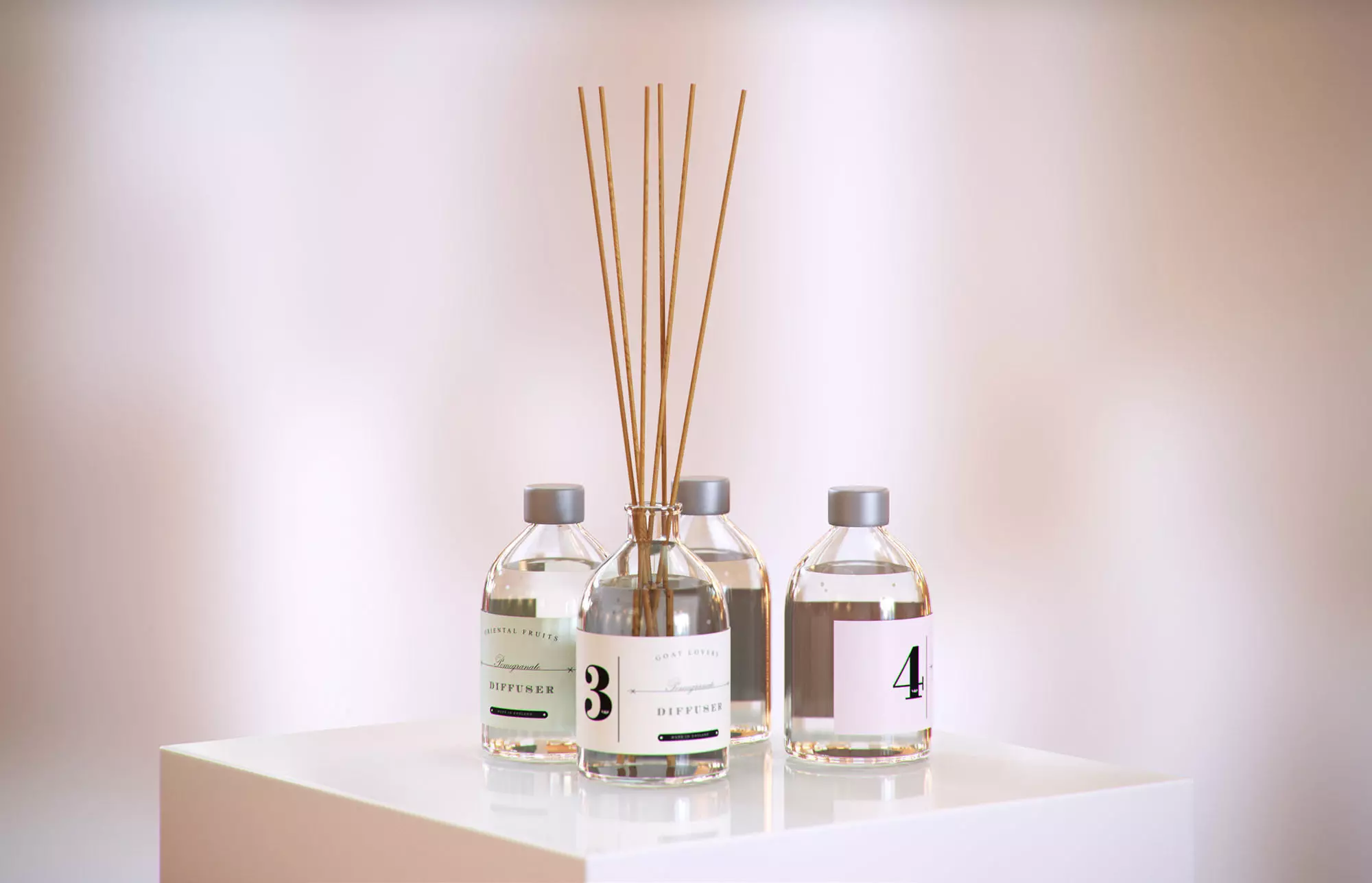 This realistic model includes four bottles with parfums. Fragrance sticks placed in one of them. Model prepared for 3d architectural visualisations and other graphic works.