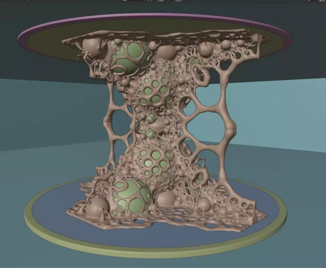 resembling a menger fractal combining five fractal formulas this production is not only a challenge of talent and knowledge, the background of such work combines the spiritual, technology, biological and non-AI architectural design