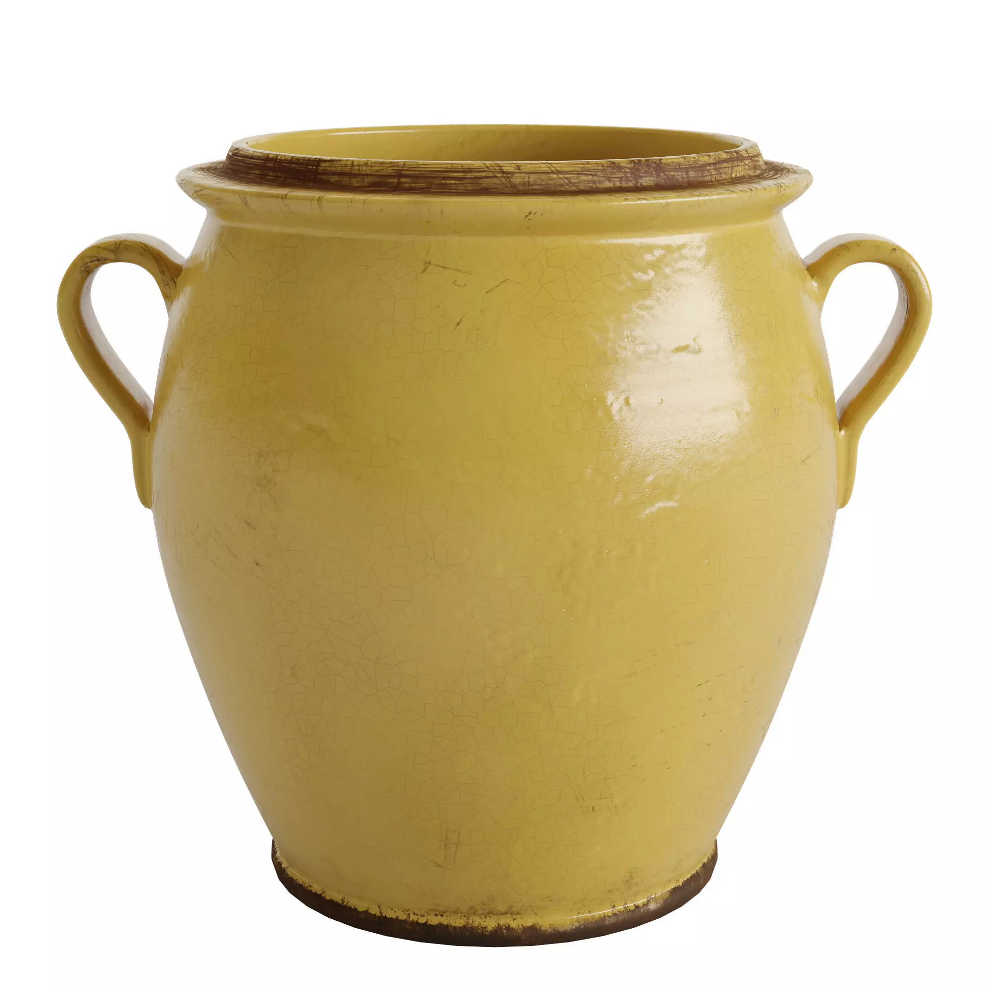 • Handcrafted from clay in the Philippines. Features a glazed finish. A collared neck and two handles give it a classic feel, while its rustic, antiqued yellow glaze lends a finely crafted look.