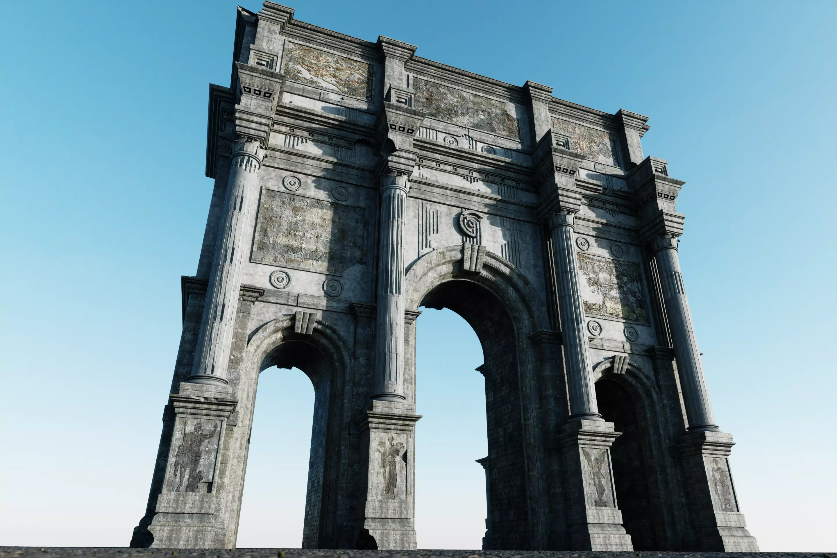 High-quality 3D model of an Ancient Roman Triumphal Arch. Perfect for historical scenes, games, and architectural projects.
