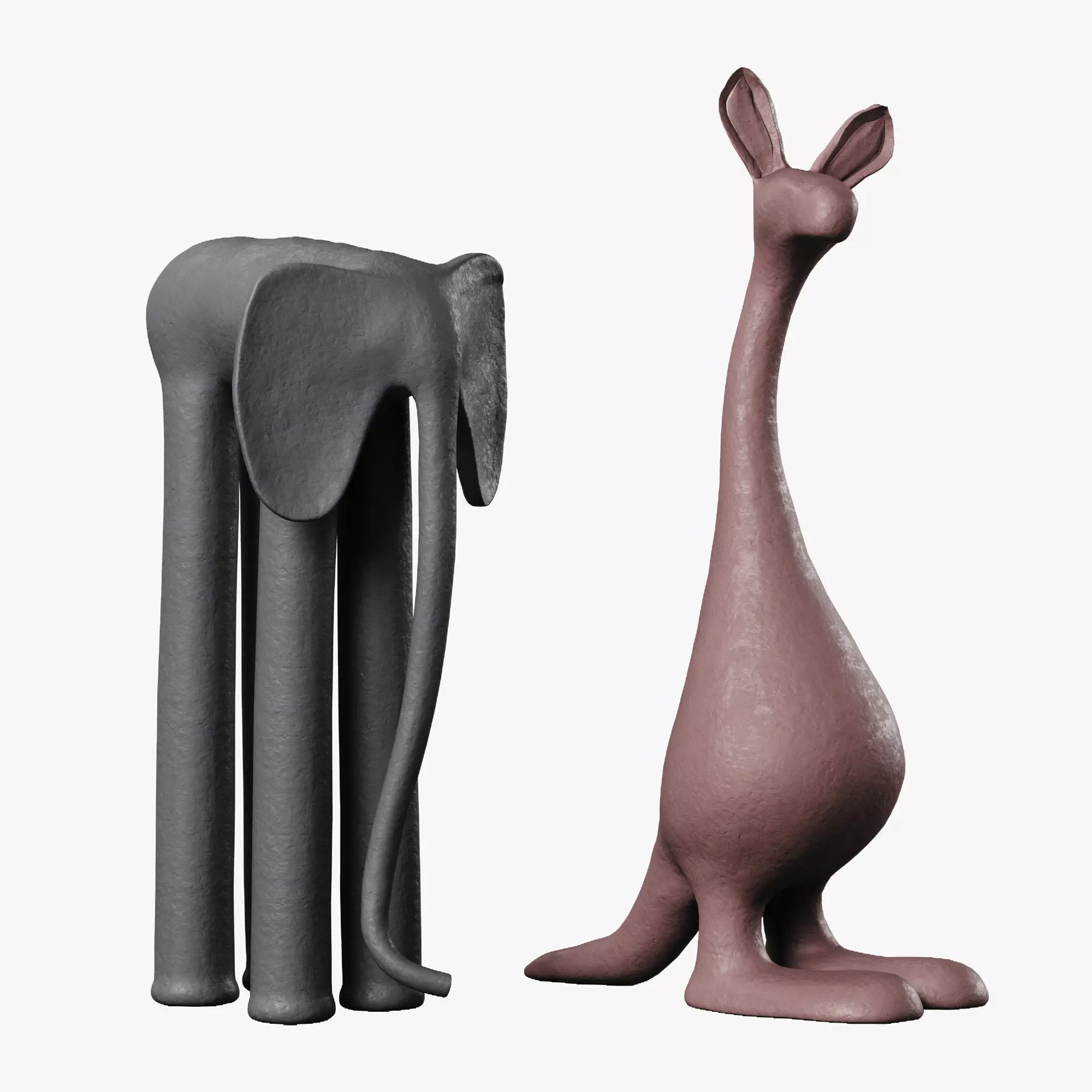 Sharon Stelter American sculptor,Each sculpture is an original design. The work is made by hand from slabs and rolls of porcelain stoneware clay. The paint is an iron oxide wash applied between firings. Once fired, each sculpture is highly durable and waterproof, and can be used both indoors and outdoors in moderate weather.Elephant 105/140/225mmKangaroo 85/145/280mm
