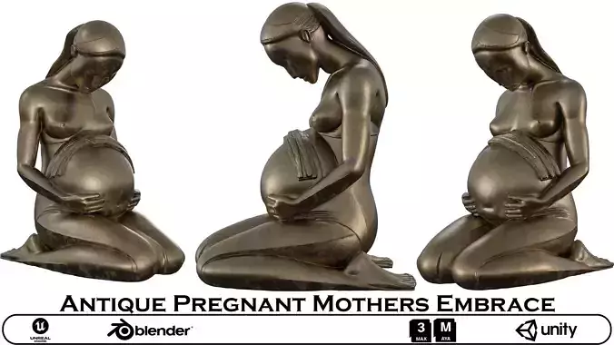 Name: Antique Pregnant Mothers EmbraceType: modelFormat: 3Ds Max 2013Export: FBX, OBJRender: VRay (5.x), Corona (9)Polys: 20166Verts: 20171Matclasses: VRayMtl,_CoronaPhysicalMtlUnits: CentimetersDimension: 76.13 x 54.02 x 99.61Date: 2025.8.28This premium 3D model is a highly detailed and realistic representation of a serene statue of a pregnant woman. The sculpture is rendered with a beautiful, aged metallic texture, giving it the appearance of being crafted from worn bronze with a rich, mottled patina. The model captures a peaceful and loving expression as the figure kneels and embraces her pregnant form. This captivating asset is perfect for adding a sense of tranquility, intimacy, and artistic elegance to any scene. High-Quality Sculpt and Textures: The model is created from a high-resolution sculpt, meticulously capturing the detailed form and the intricate, mottled texture of the aged metal. The PBR (Physically Based Rendering) textures are expertly crafted to provide a photorealistic look, with accurate maps that highlight the worn metallic surface and the beautiful patina.
