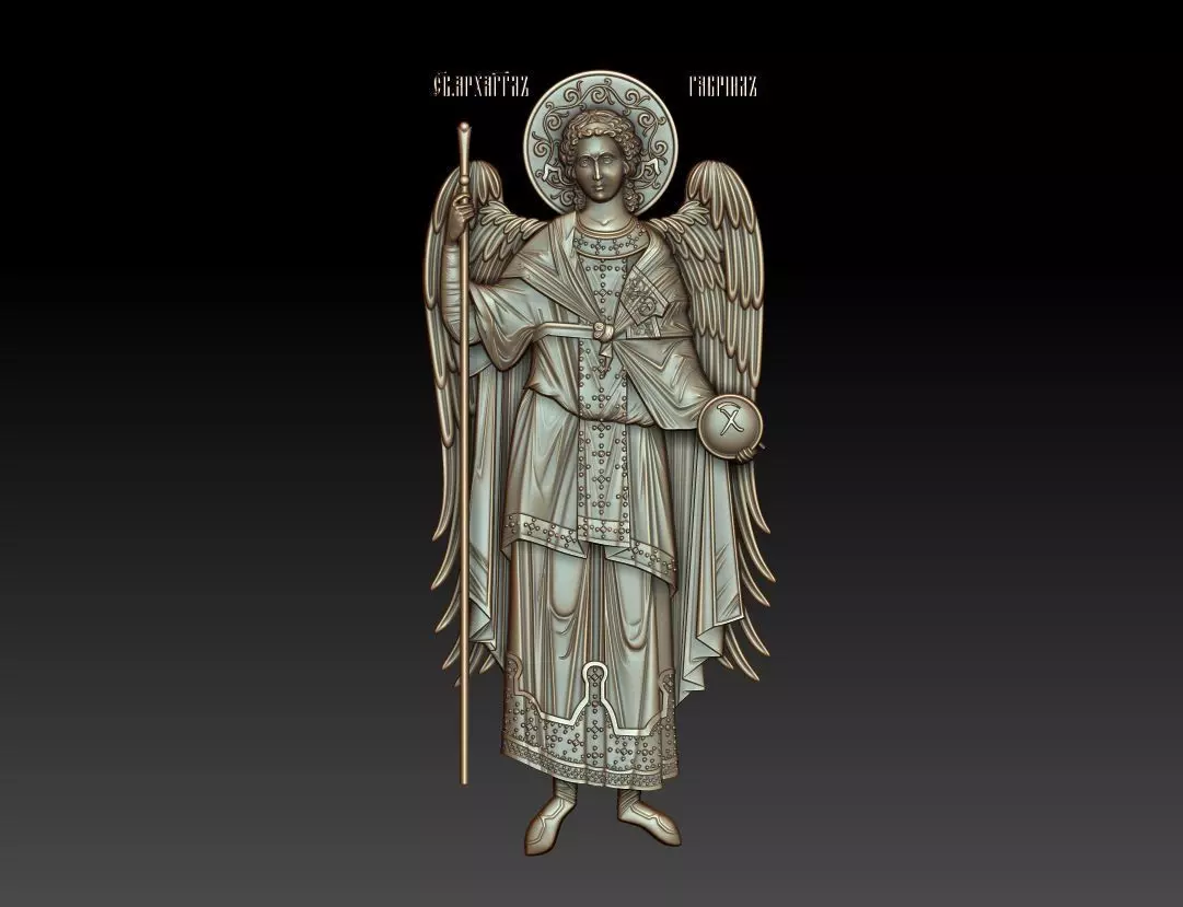 3d model Orthodox icon Archangel Gabriel. For milling on CNC machines. This model is ONLY for cnc, it is NOT for 3d printing. Can be used in the production of souvenirs, furniture, jewelry. Files in stl format, for import to artcam, rhinoceros, 3ds max, etc. You can scale the model to any size you need.