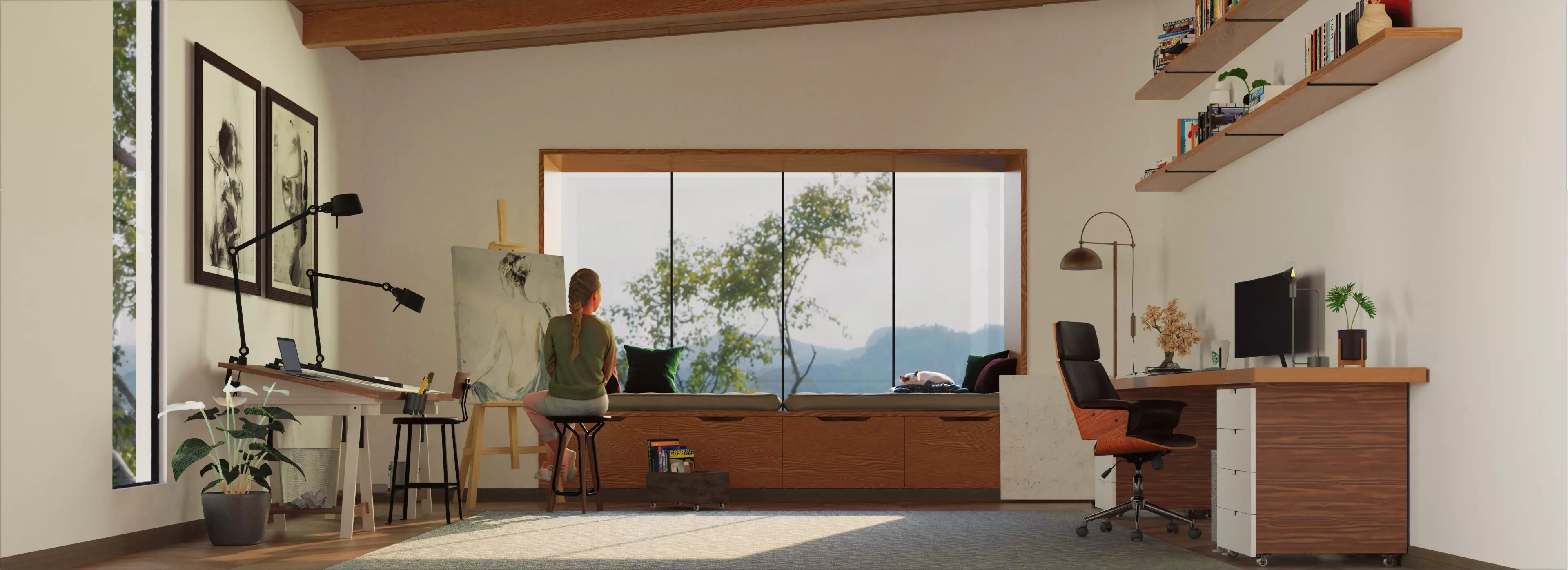 The model has material settings that define how surfaces look (color, shine, transparency, etc.).
