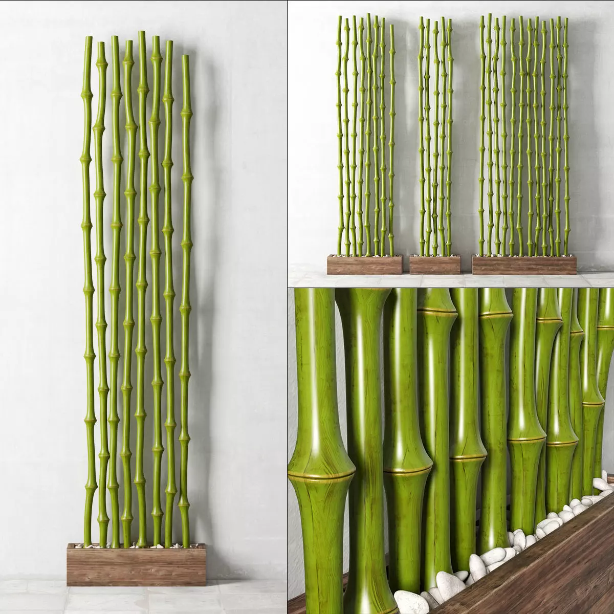 Bambo decor green wood box pebble 3D model